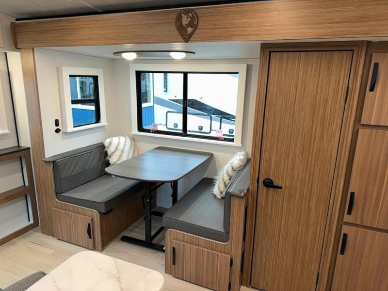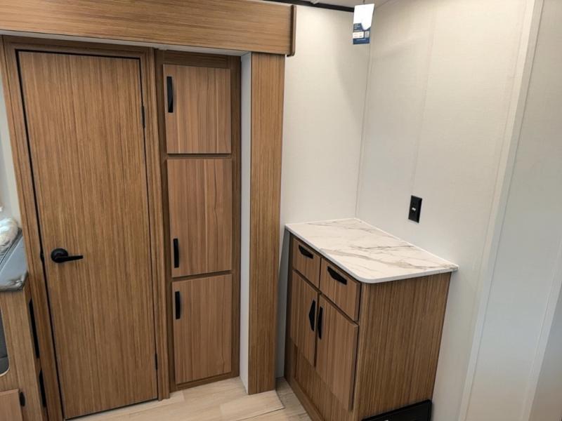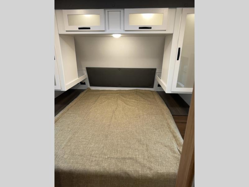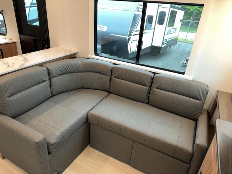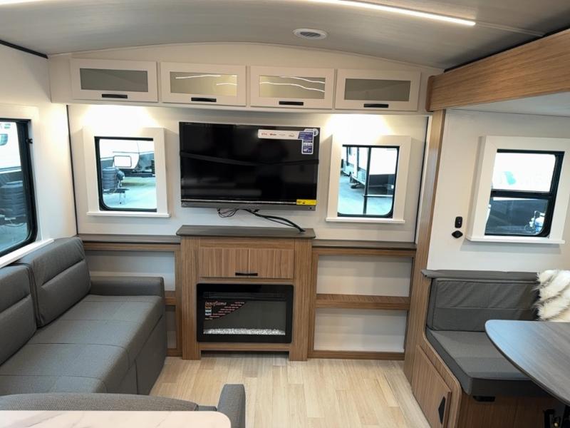 Step right into this rear living travel trailer for fun trips at the lake! There is an L-shaped sectional sofa in the back, along with an entertainment center and a fireplace to enjoy cozy evenings indoors. The booth dinette will provide a place to dine, play games, and even let a guest or two littles ones sleep. This unit also includes a spacious pantry and a coffee station where you can set up your own Keurig machine. A full kitchen will let you prepare meals each day, and the mid-coach full bath will be easily accessible for everyone to use. You will also love the front private bedroom with its queen bed, plus dual wardrobes and dual nightstands so everything has its own place!