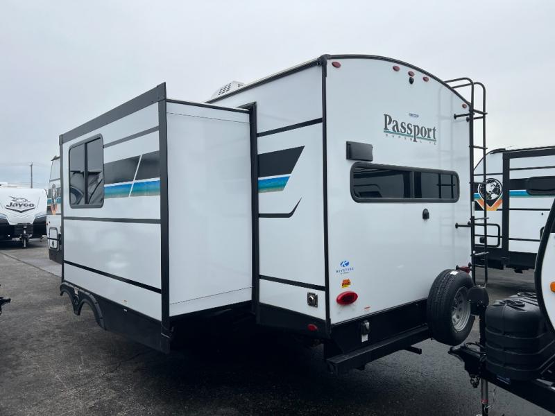 With any Keystone Passport Super Lite travel trailer you will enjoy lightweight towing and lots of interior comforts! The power tongue jack lets you hitch up at the drop of a hat, and the Dexter torsion axle rubber ride suspension will make towing easier than ever. You will appreciate having power stabilizer jacks for quick setup and an exterior convenience center to monitor tank levels. These trailers are constructed with a seamless, laminated and gel-coated filon exterior, 80% tinted safety glass windows, and a one-piece polypropylene underbelly. The interior will have you feeling right at home with residential durable Beauflor vinyl flooring, deluxe night shades, LED lighting throughout, and seamless kitchen countertops to name a few comforts.