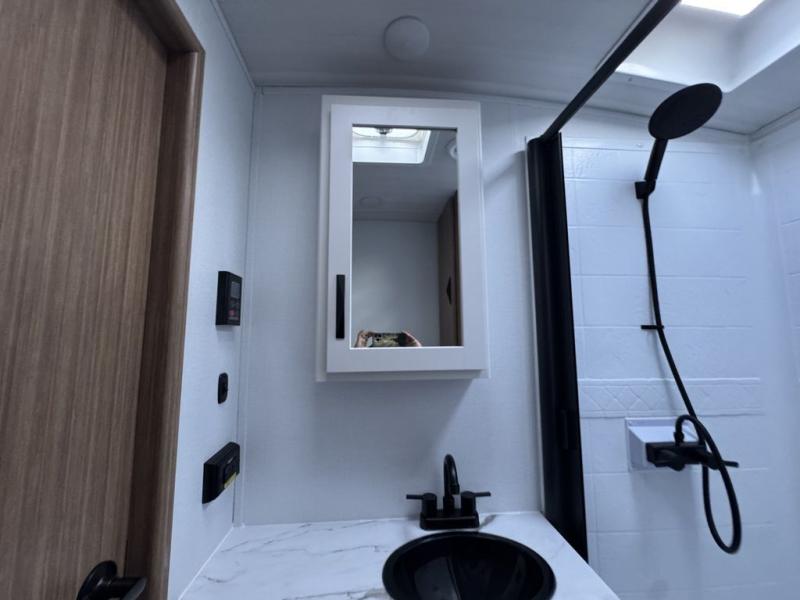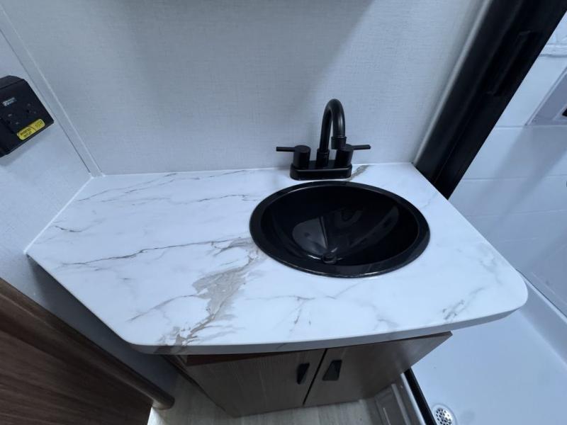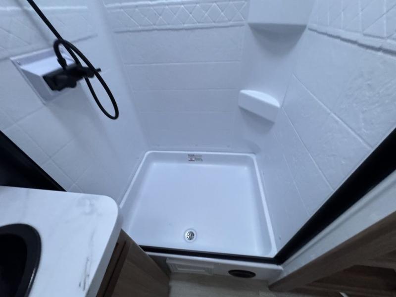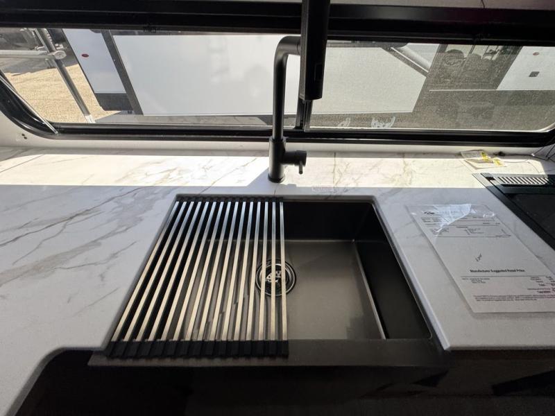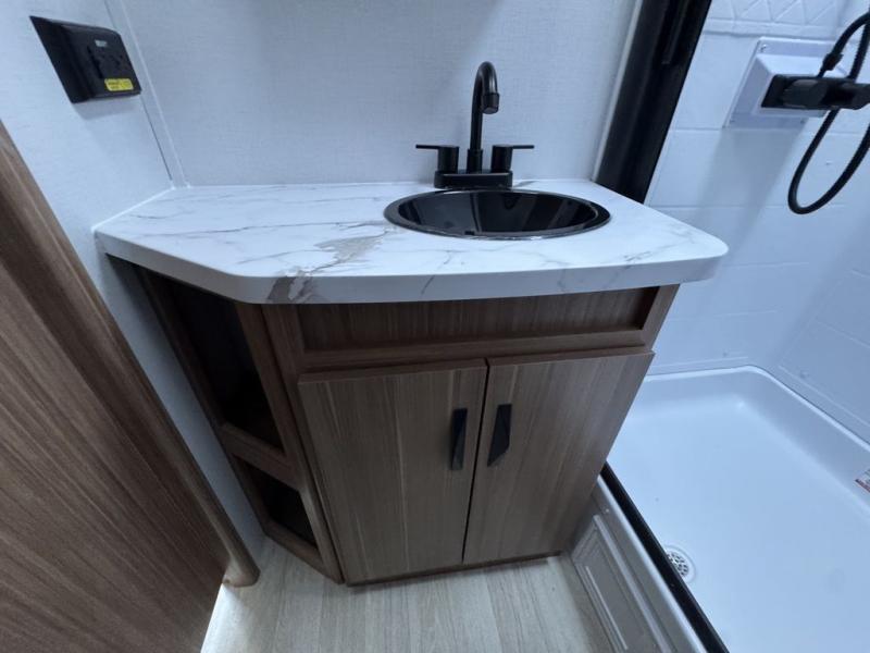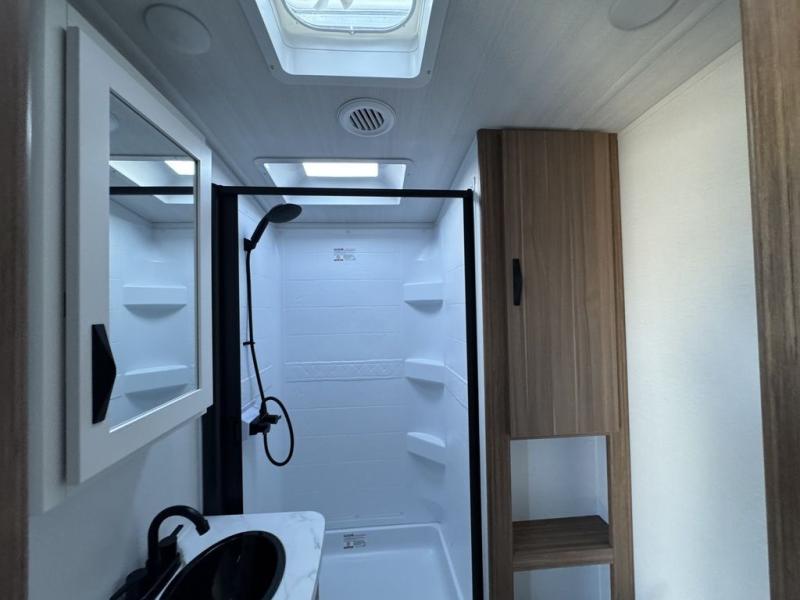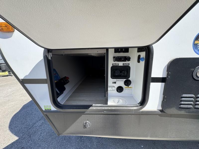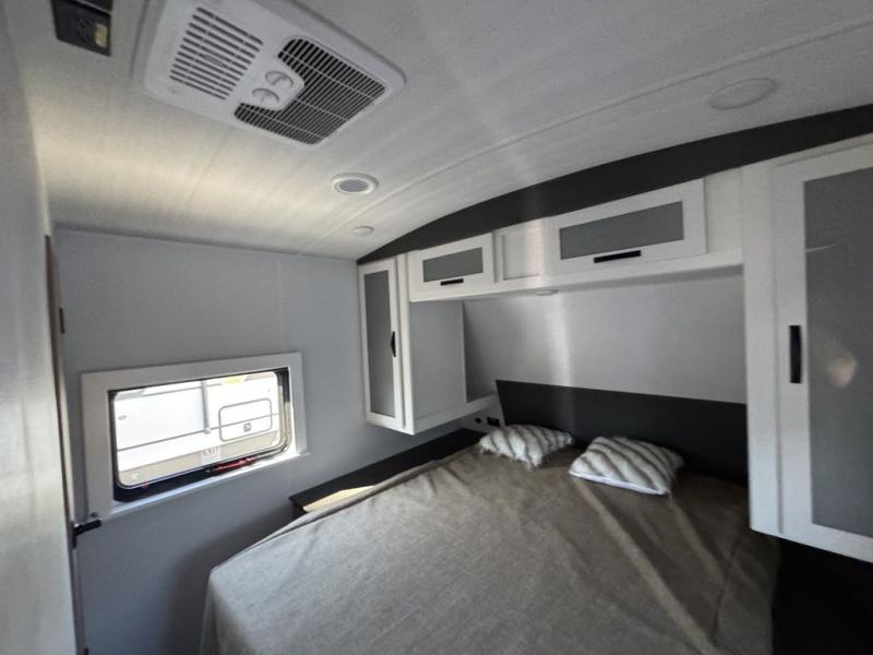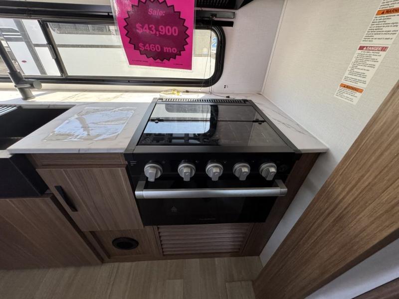 You'll love every minute spent in this rear kitchen travel trailer. There is extended counter space the chef is sure to love, and the pull-out dinette table provides a place to dine together. If the weather is nice, you might want to cook on the outdoor kitchen and dine under the 19' awning. Back inside there is a tri-fold sofa and optional luxury cinema recliners to relax on in the evening, and the full bath will let you freshen up before bed. Speaking of bedtime; the front private bedroom will be waiting for you with a queen bed, a closet, plus dual nightstands and dual wardrobes!