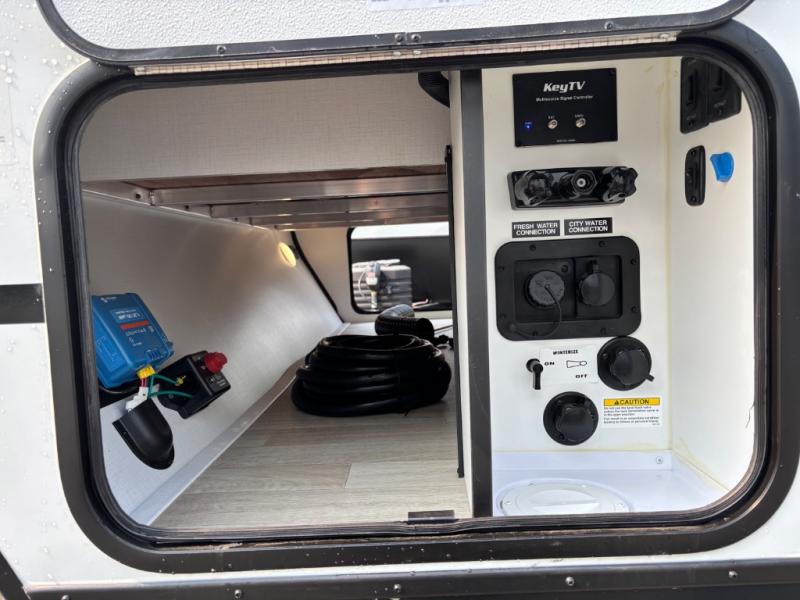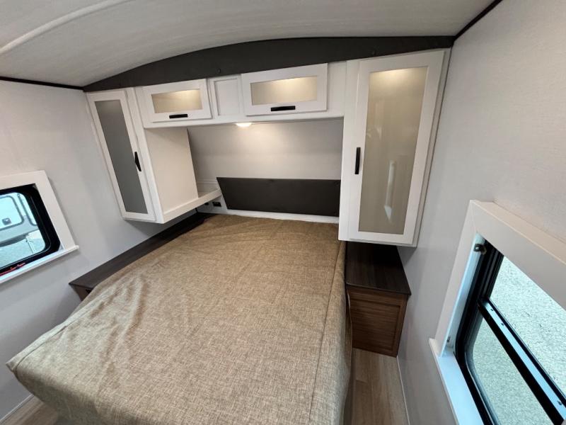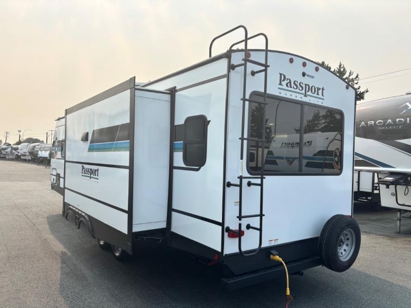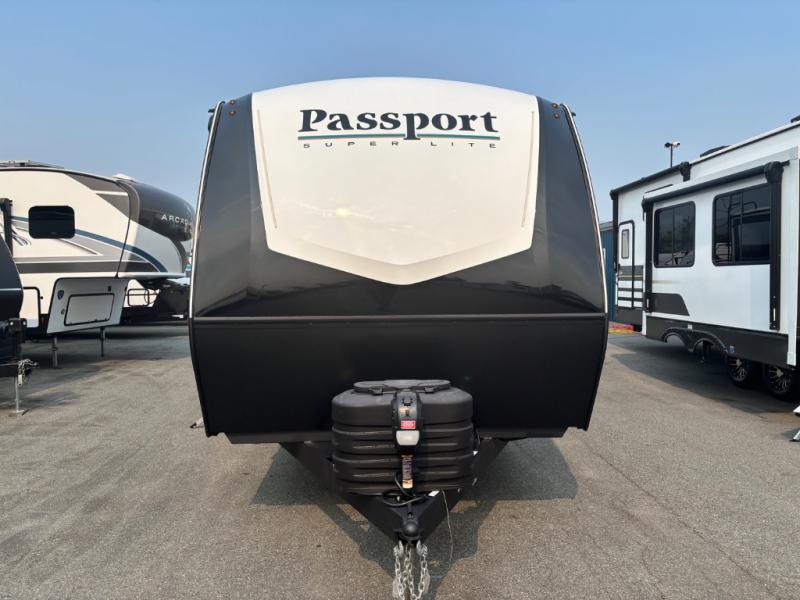 With any Keystone Passport Super Lite travel trailer you will enjoy lightweight towing and lots of interior comforts! The power tongue jack lets you hitch up at the drop of a hat, and the Dexter torsion axle rubber ride suspension will make towing easier than ever. You will appreciate having power stabilizer jacks for quick setup and an exterior convenience center to monitor tank levels. These trailers are constructed with a seamless, laminated and gel-coated filon exterior, 80% tinted safety glass windows, and a one-piece polypropylene underbelly. The interior will have you feeling right at home with residential durable Beauflor vinyl flooring, deluxe night shades, LED lighting throughout, and seamless kitchen countertops to name a few comforts.