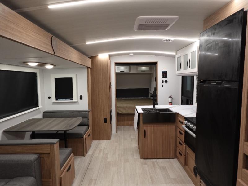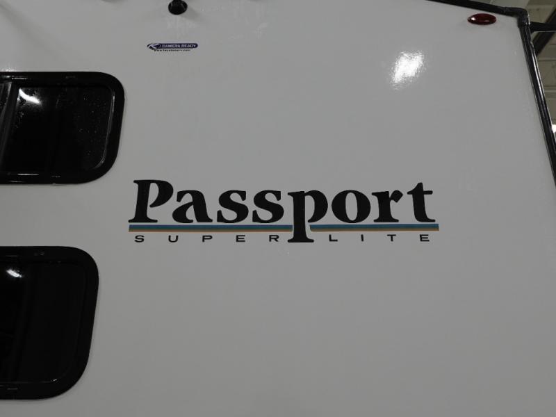 With any Keystone Passport Super Lite travel trailer you will enjoy lightweight towing and lots of interior comforts! The power tongue jack lets you hitch up at the drop of a hat, and the Dexter torsion axle rubber ride suspension will make towing easier than ever. You will appreciate having power stabilizer jacks for quick setup and an exterior convenience center to monitor tank levels. These trailers are constructed with a seamless, laminated and gel-coated filon exterior, 80% tinted safety glass windows, and a one-piece polypropylene underbelly. The interior will have you feeling right at home with residential durable Beauflor vinyl flooring, deluxe night shades, LED lighting throughout, and seamless kitchen countertops to name a few comforts.