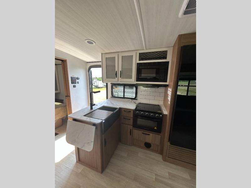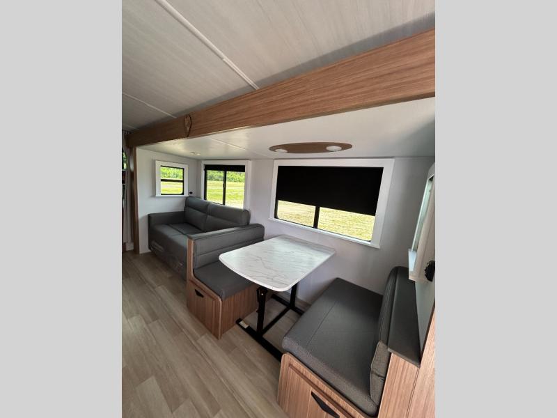 With any Keystone Passport Super Lite travel trailer you will enjoy lightweight towing and lots of interior comforts! The power tongue jack lets you hitch up at the drop of a hat, and the Dexter torsion axle rubber ride suspension will make towing easier than ever. You will appreciate having power stabilizer jacks for quick setup and an exterior convenience center to monitor tank levels. These trailers are constructed with a seamless, laminated and gel-coated filon exterior, 80% tinted safety glass windows, and a one-piece polypropylene underbelly. The interior will have you feeling right at home with residential durable Beauflor vinyl flooring, deluxe night shades, LED lighting throughout, and seamless kitchen countertops to name a few comforts.