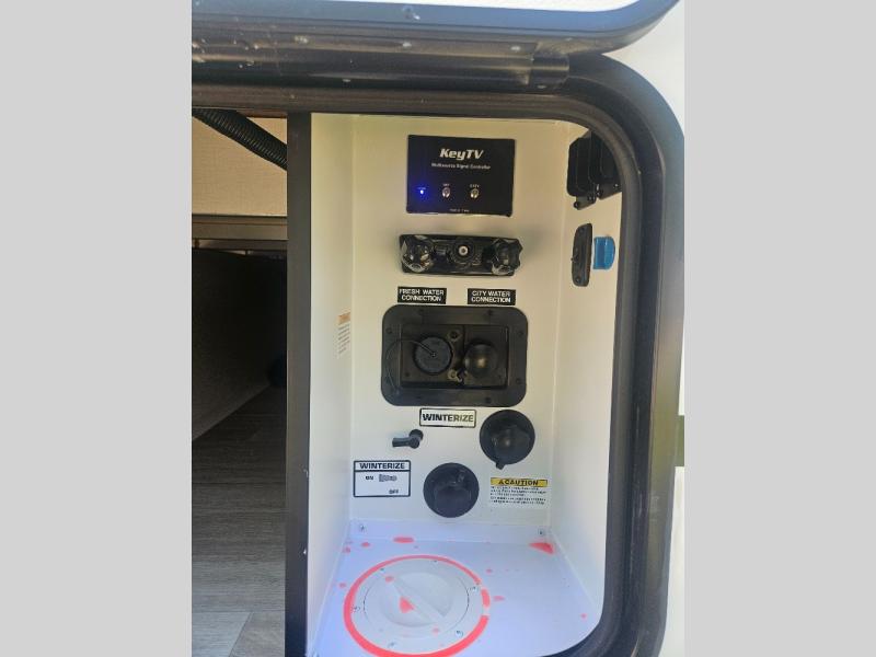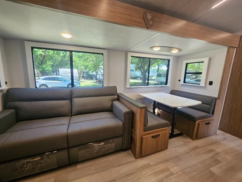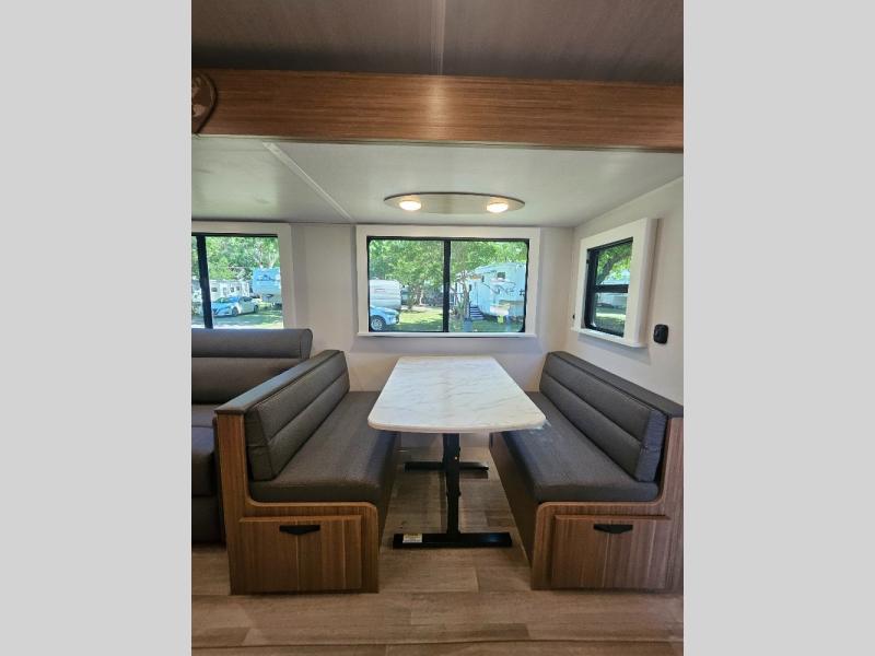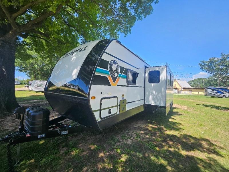 With any Keystone Passport Super Lite travel trailer you will enjoy lightweight towing and lots of interior comforts! The power tongue jack lets you hitch up at the drop of a hat, and the Dexter torsion axle rubber ride suspension will make towing easier than ever. You will appreciate having power stabilizer jacks for quick setup and an exterior convenience center to monitor tank levels. These trailers are constructed with a seamless, laminated and gel-coated filon exterior, 80% tinted safety glass windows, and a one-piece polypropylene underbelly. The interior will have you feeling right at home with residential durable Beauflor vinyl flooring, deluxe night shades, LED lighting throughout, and seamless kitchen countertops to name a few comforts.