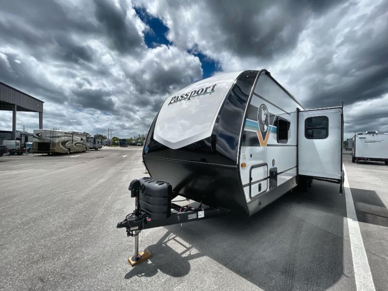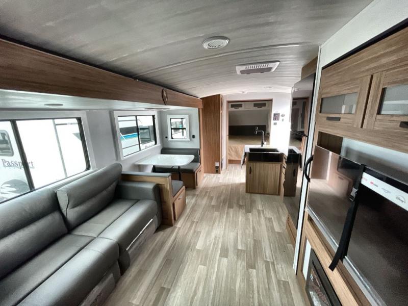 With any Keystone Passport Super Lite travel trailer you will enjoy lightweight towing and lots of interior comforts! The power tongue jack lets you hitch up at the drop of a hat, and the Dexter torsion axle rubber ride suspension will make towing easier than ever. You will appreciate having power stabilizer jacks for quick setup and an exterior convenience center to monitor tank levels. These trailers are constructed with a seamless, laminated and gel-coated filon exterior, 80% tinted safety glass windows, and a one-piece polypropylene underbelly. The interior will have you feeling right at home with residential durable Beauflor vinyl flooring, deluxe night shades, LED lighting throughout, and seamless kitchen countertops to name a few comforts.