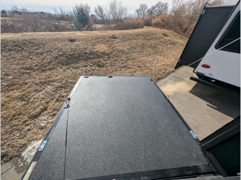 Experience a breath of fresh air with one of these Keystone RV Raptor fifth wheel toy haulers! Their rugged construction consists of a one-piece Alpha Super Flex TPO roof membrane, Dyna Span floor decking, and 5,000 lb. frame-welded tie- downs to keep your toys in place as you travel. Some unexpected conveniences you will appreciate include an Omni-Chill A/C system to keep you cool on those hot summer days, a Furrion backup camera and Hitch Vision to prevent damages, and a Generation 3 iN-Command smart automation system with Global Connect to make life easier. There is also designer style vinyl flooring throughout, along with hardwood ceiling treatment with LED accent lighting, beach wood and white cabinetry, and many more interior comforts!