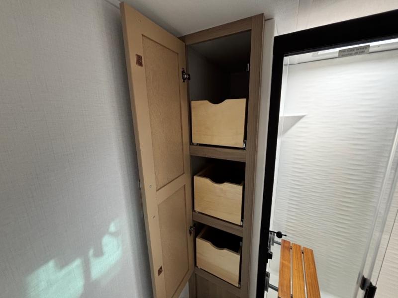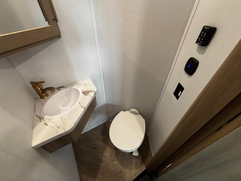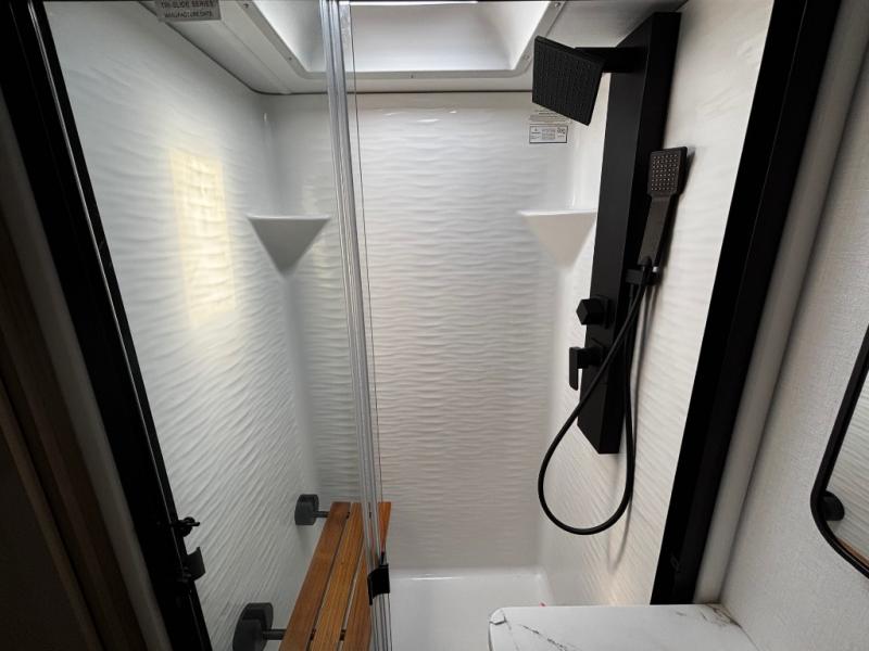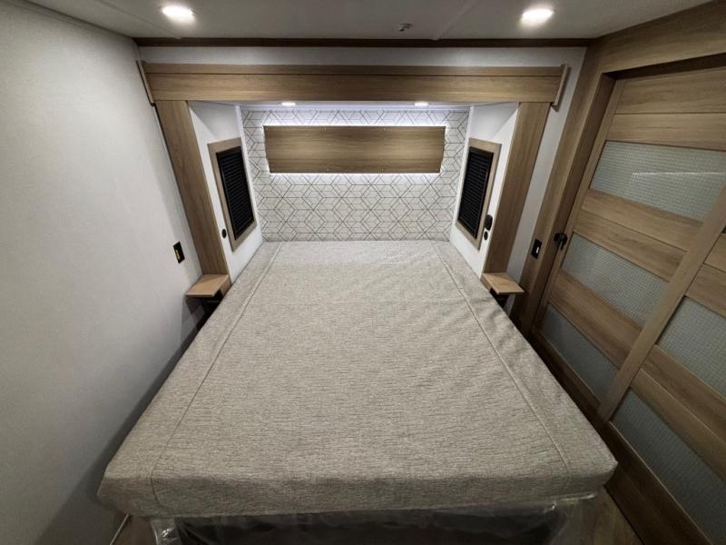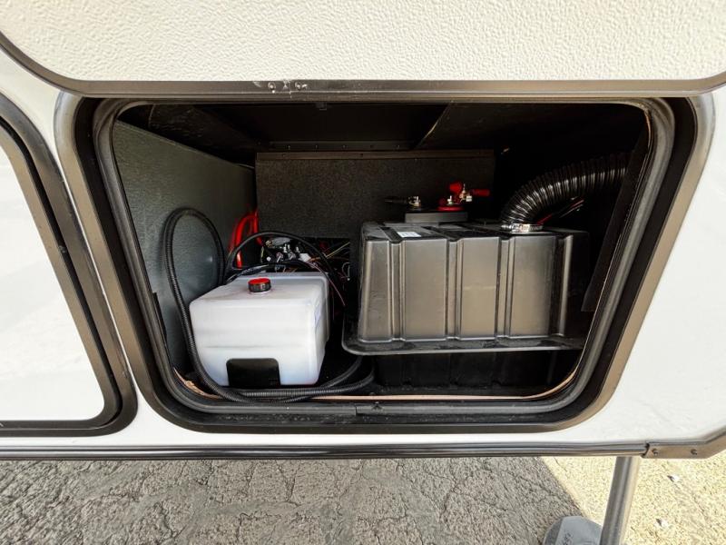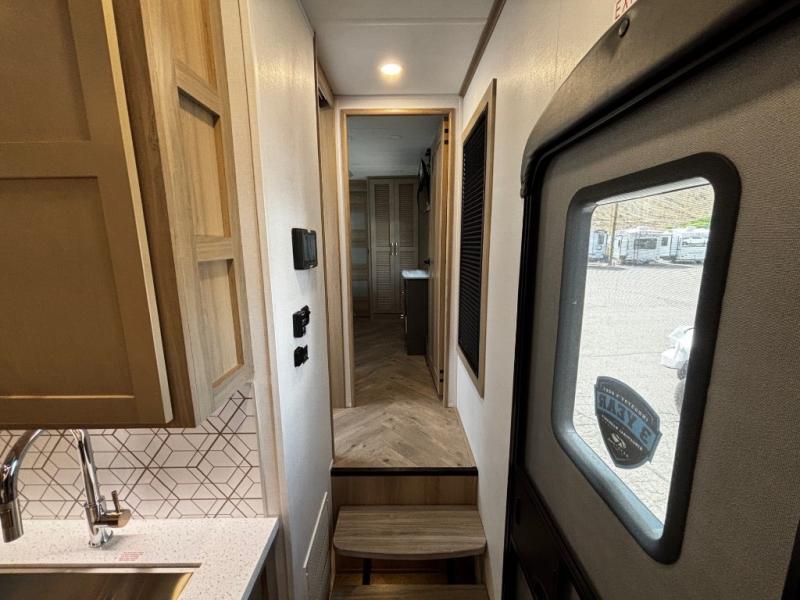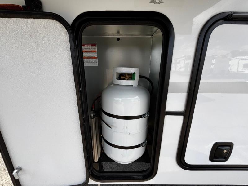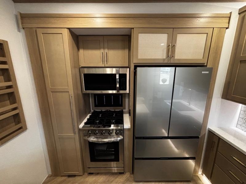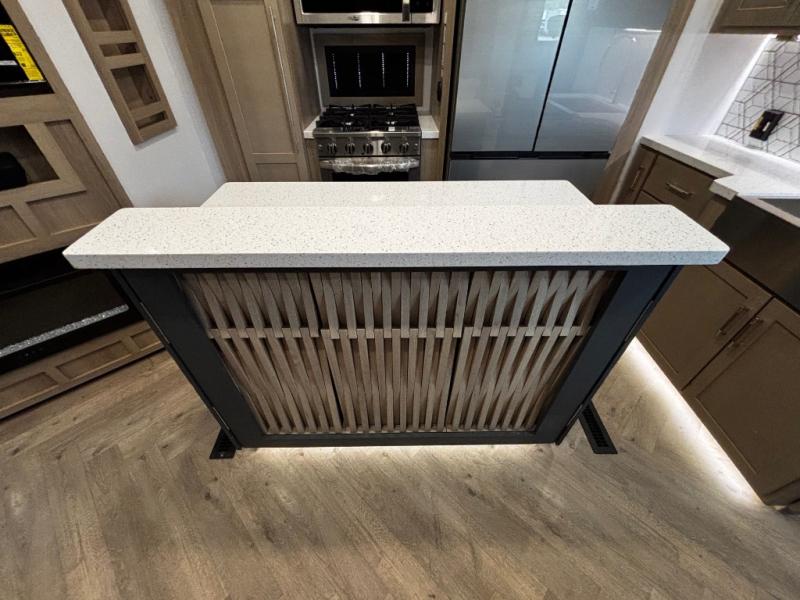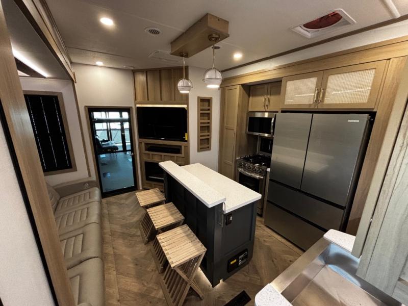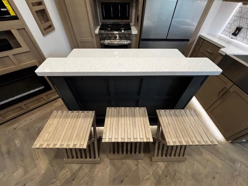 You will have everything you need for a comfortable camping trip and then some with this toy hauler! Load your toys into the 16' garage area with the zero gravity ramp door and secure them with 5,000 lb. frame welded tie-downs. The garage also has an electric bed above dual opposing sofas with a table in between, a loft with a twin bed, a half bathroom, and washer and dryer prep. Create your best meals with the four burner cooktop and enjoy the company of others sitting at the kitchen island with three bar stools while you prepare it. Relax in true comfort on the 4-seat recliner across from the entertainment center with a fireplace. When you're ready to wind down your nights, take a hot shower in the dual entry bathroom then head directly into the front private bedroom which features a king bed suite with a large front wardrobe for clothing storage, and washer/dryer prep in case you wish to add appliances so you can wash your clothes while you are away!