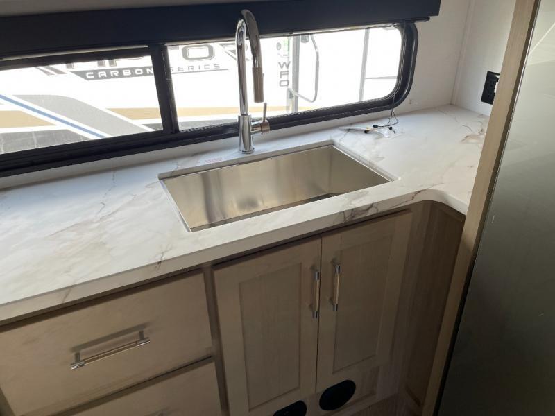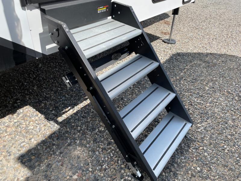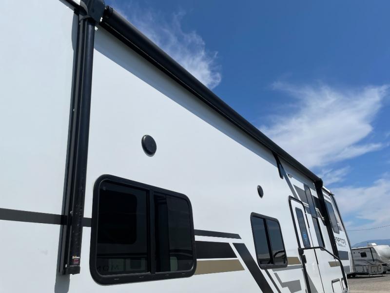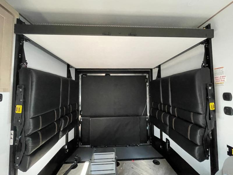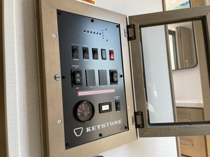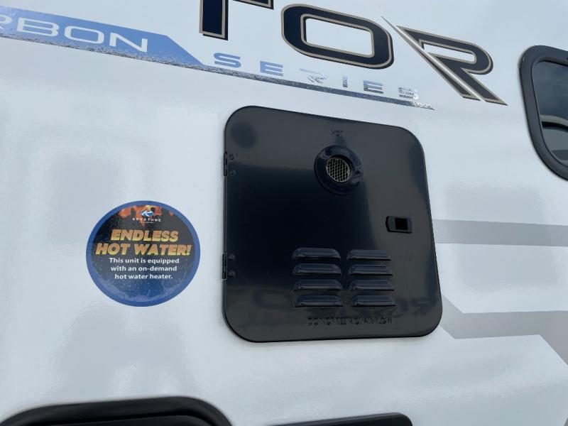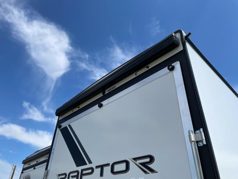 With any Keystone Raptor Carbon Series toy hauler, you will receive a rugged construction from the industry-leading patented 5,000 lb. capacity tie-downs that are welded to the frame to increase hauling safety and security, plus the Dyna Span floor decking in the garage. There is off-grid camping with the Solar Flex which delivers an affordable, high-quality RV solar energy system, and a comfortable interior with the exclusive Omni-Chill technology that offers high-efficiency air conditioning and maximum cooling. Other unexpected conveniences include soft-close hardwood cabinetry allowing you to sneak snacks without others noticing, and designer style flooring throughout for easy care and a stylish look. And each Raptor Carbon Series includes Keystone Exclusives! Now all you have to do is take charge of how you camp in a toy hauler fifth wheel or travel trailer!