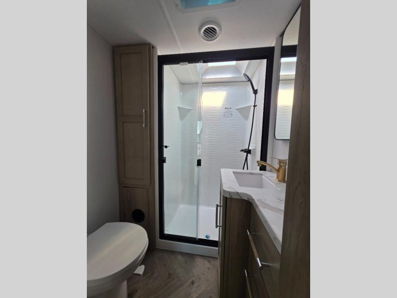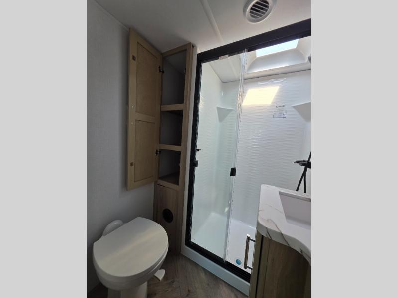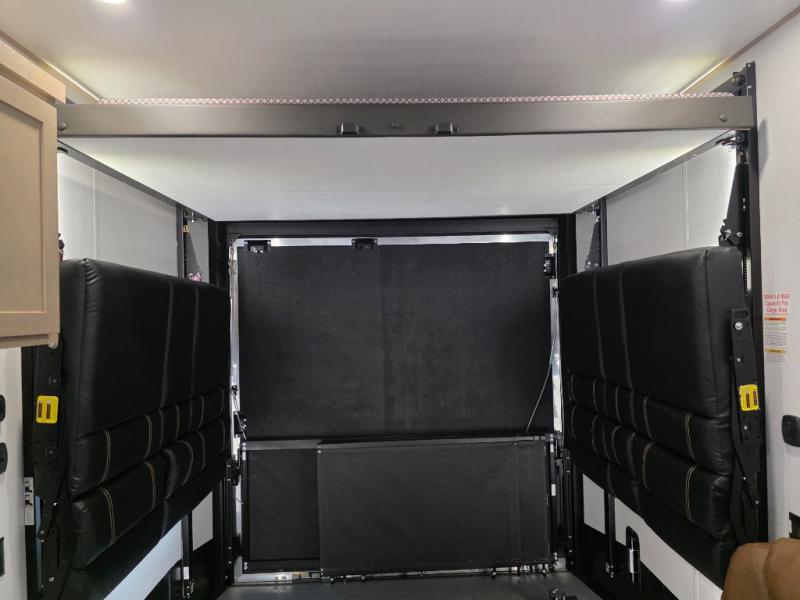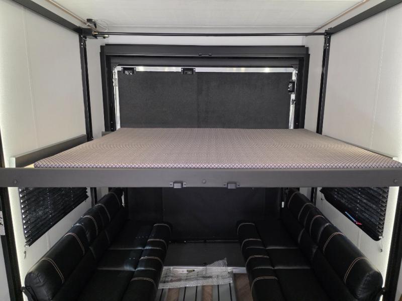 With any Keystone Raptor Carbon Series toy hauler, you will receive a rugged construction from the industry-leading patented 5,000 lb. capacity tie-downs that are welded to the frame to increase hauling safety and security, plus the Dyna Span floor decking in the garage. There is off-grid camping with the Solar Flex which delivers an affordable, high-quality RV solar energy system, and a comfortable interior with the exclusive Omni-Chill technology that offers high-efficiency air conditioning and maximum cooling. Other unexpected conveniences include soft-close hardwood cabinetry allowing you to sneak snacks without others noticing, and designer style flooring throughout for easy care and a stylish look. And each Raptor Carbon Series includes Keystone Exclusives! Now all you have to do is take charge of how you camp in a toy hauler fifth wheel or travel trailer!