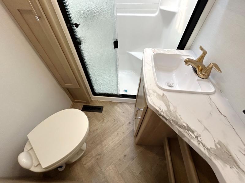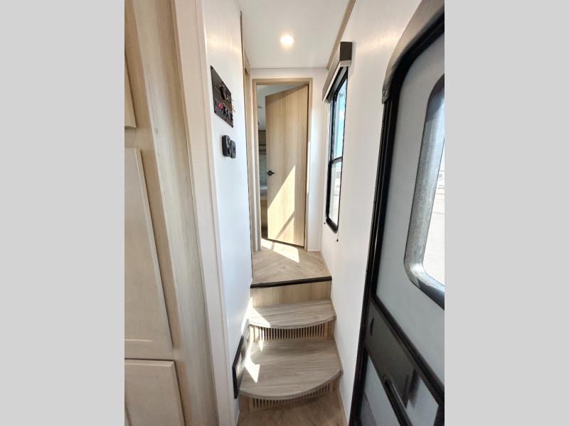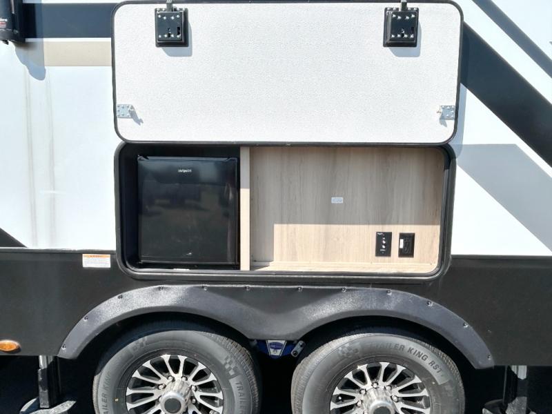 With any Keystone Raptor Carbon Series toy hauler, you will receive a rugged construction from the industry-leading patented 5,000 lb. capacity tie-downs that are welded to the frame to increase hauling safety and security, plus the Dyna Span floor decking in the garage. There is off-grid camping with the Solar Flex which delivers an affordable, high-quality RV solar energy system, and a comfortable interior with the exclusive Omni-Chill technology that offers high-efficiency air conditioning and maximum cooling. Other unexpected conveniences include soft-close hardwood cabinetry allowing you to sneak snacks without others noticing, and designer style flooring throughout for easy care and a stylish look. And each Raptor Carbon Series includes Keystone Exclusives! Now all you have to do is take charge of how you camp in a toy hauler fifth wheel or travel trailer!