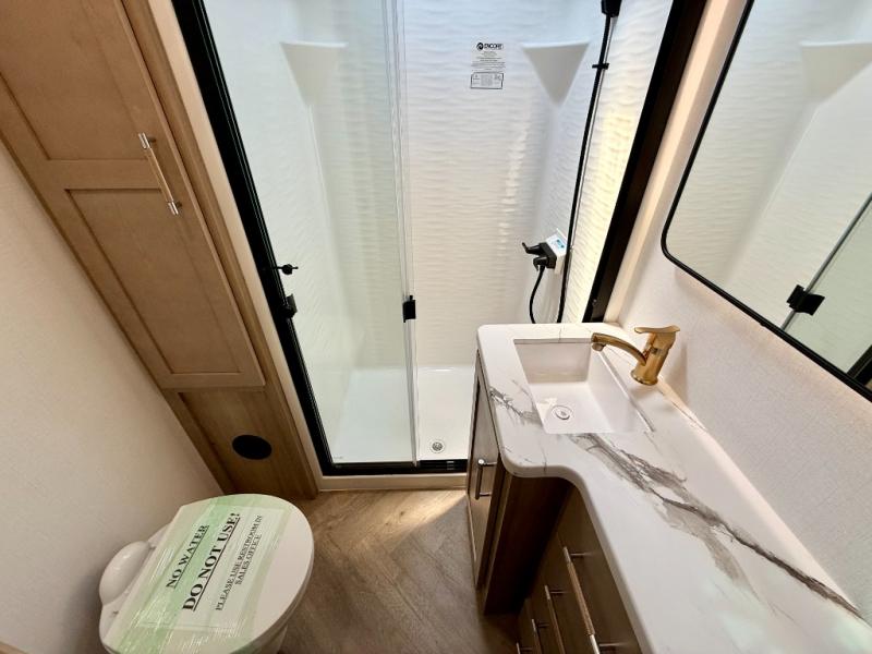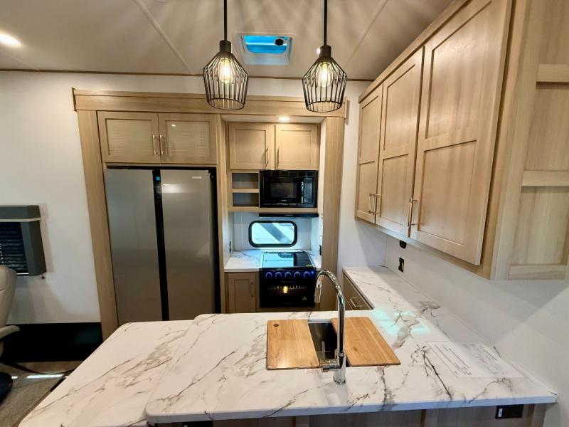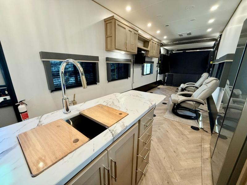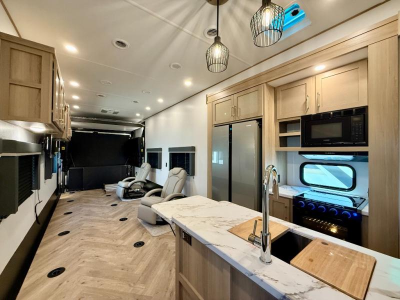 INVOICE SALE!!! NEW Carbon 363 with large L-Shaped Kitchen (w Slide)! 21'4" Open GARAGE! 5.5kW Generator, Solar Flex Discover, Ramp Door Patio Package!!