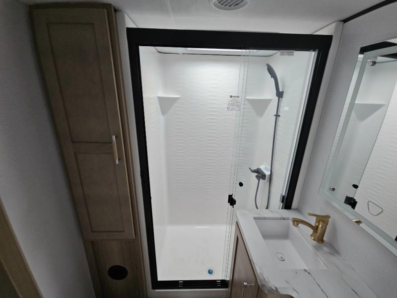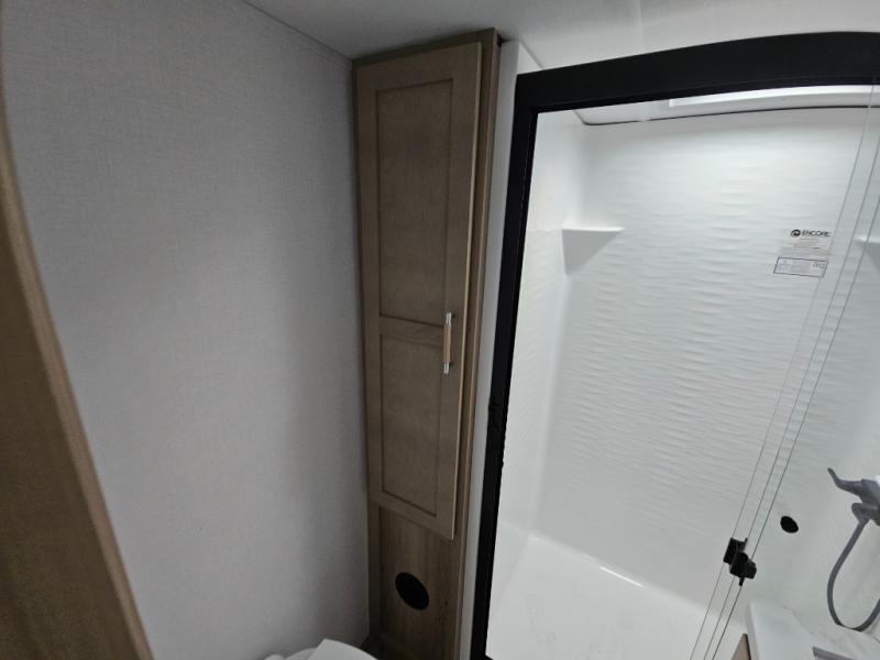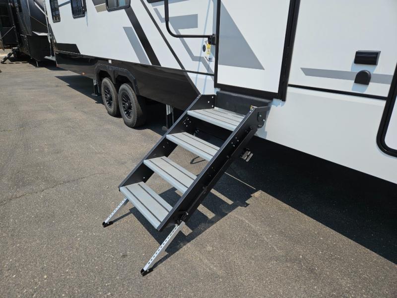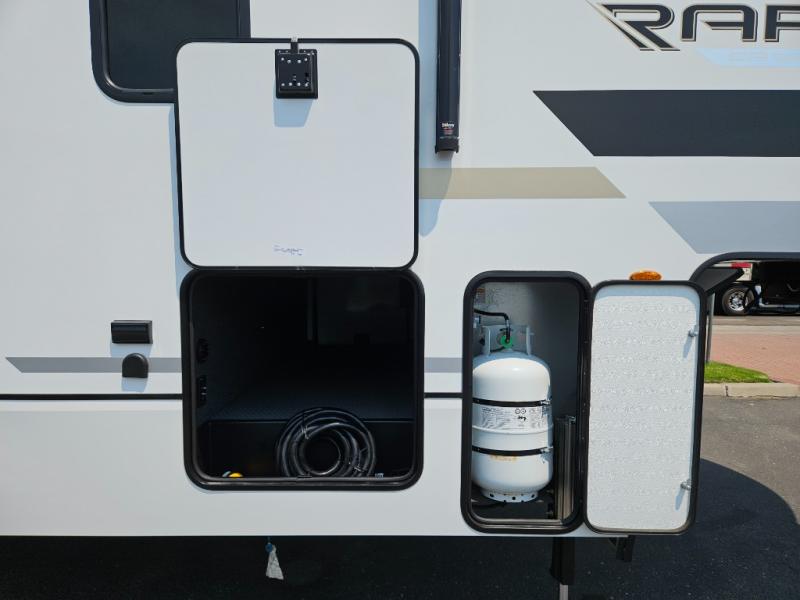 With any Keystone Raptor Carbon Series toy hauler, you will receive a rugged construction from the industry-leading patented 5,000 lb. capacity tie-downs that are welded to the frame to increase hauling safety and security, plus the Dyna Span floor decking in the garage. There is off-grid camping with the Solar Flex which delivers an affordable, high-quality RV solar energy system, and a comfortable interior with the exclusive Omni-Chill technology that offers high-efficiency air conditioning and maximum cooling. Other unexpected conveniences include soft-close hardwood cabinetry allowing you to sneak snacks without others noticing, and designer style flooring throughout for easy care and a stylish look. And each Raptor Carbon Series includes Keystone Exclusives! Now all you have to do is take charge of how you camp in a toy hauler fifth wheel or travel trailer!