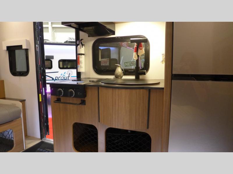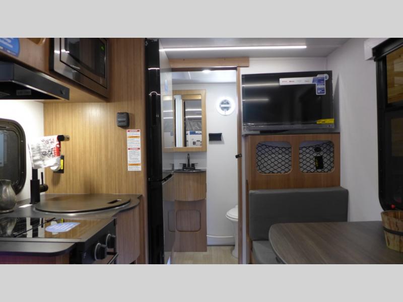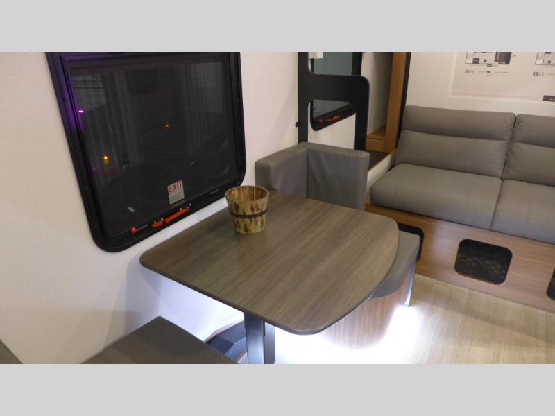 This single axle trailer is both cozy and versatile since there is a fold down sofa/Murphy bed up front! Now you can easily convert seating space into sleeping space, plus there are dual bedside closets to keep your things tidy. A two burner cooktop and air fryer/convection microwave will let you cook meals each day, and a booth dinette provides a place to dine together. You can also choose to add the optional flip-up bunk above the dinette if you need more sleeping space. And don't overlook the full rear bath that will allow you to freshen up without having to leave your camper!