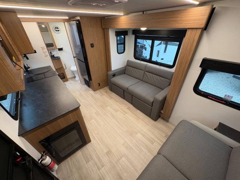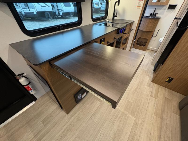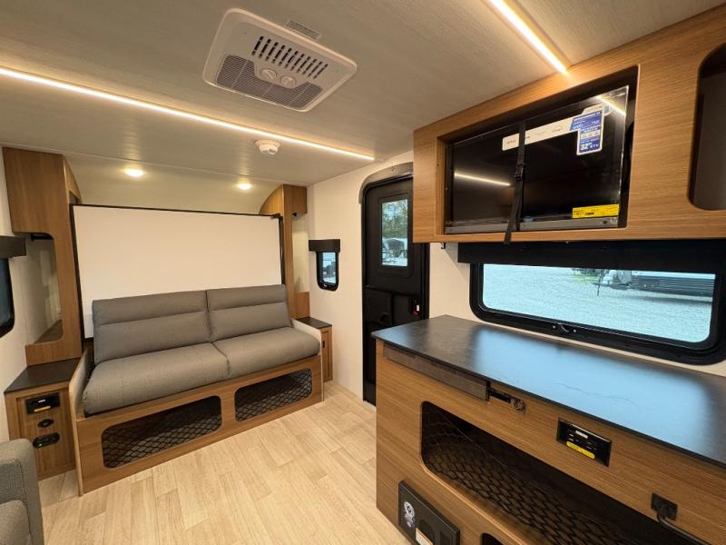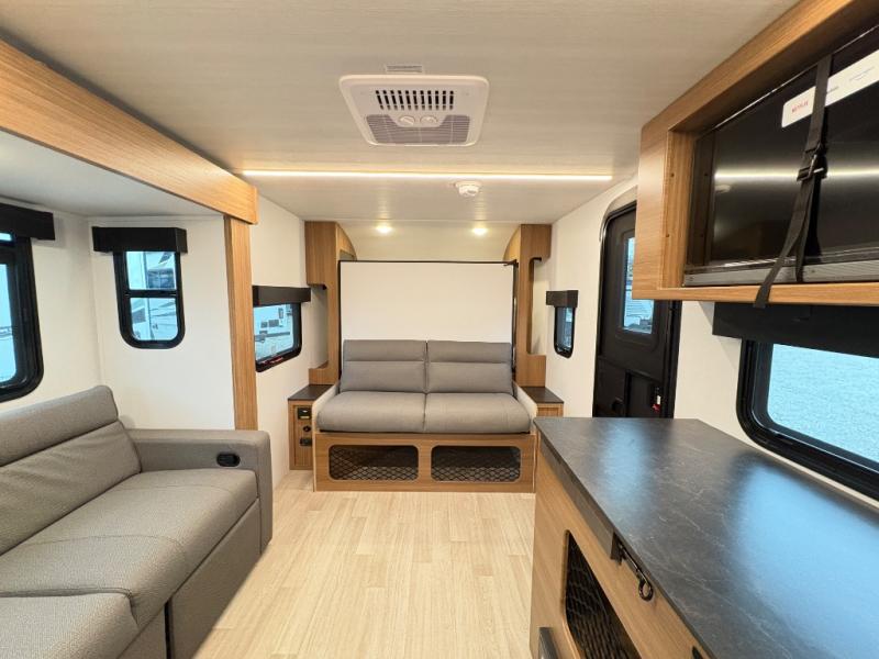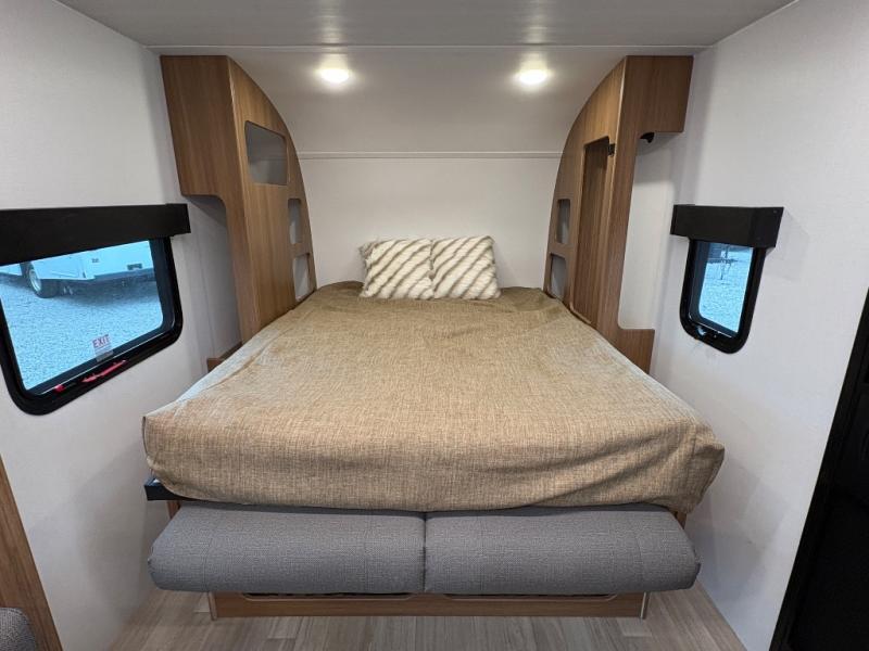 The compact yet feature-packed Keystone Reign 18RB is the perfect single-axle travel trailer for weekend warriors and minimalist RVers alike. With a smart layout that includes a front Murphy bed, spacious theater dinette slide, and an oversized kitchen countertop, this trailer maximizes comfort and functionality in a small footprint.