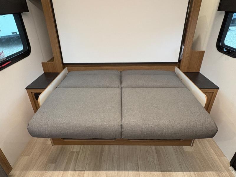 - Front Murphy Bed – Converts from sofa to sleeping space with dual bedside wardrobes
