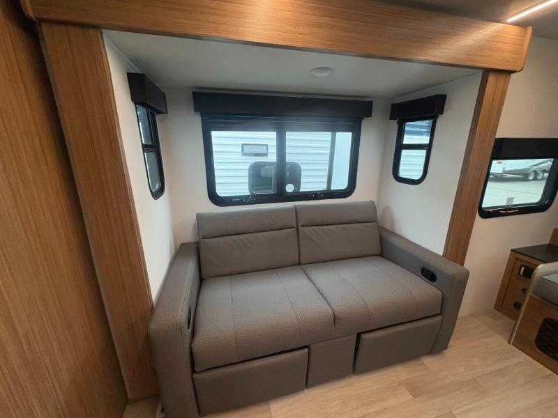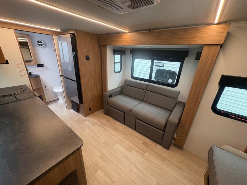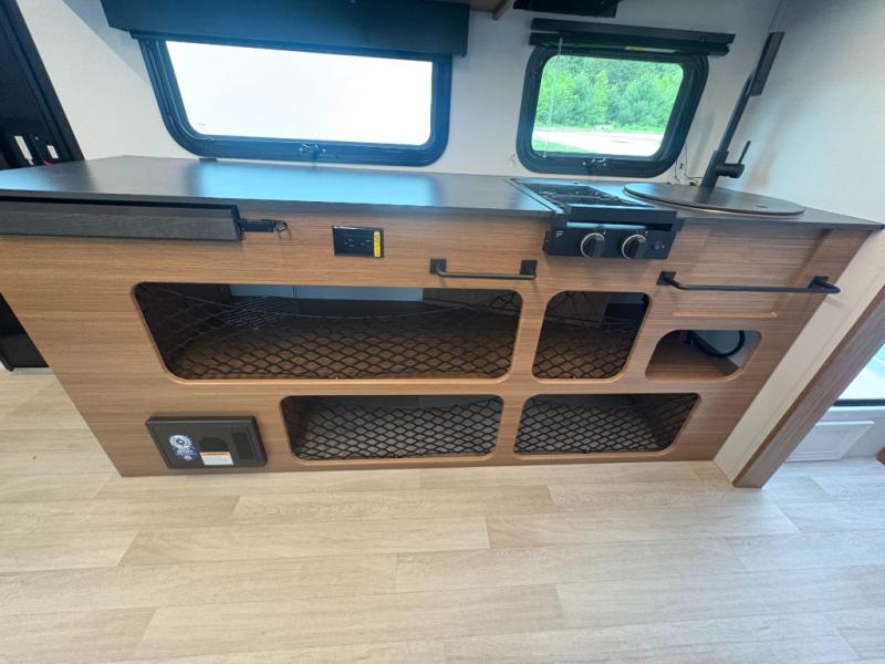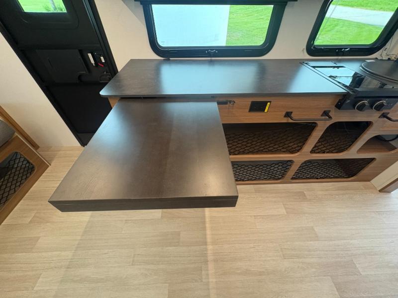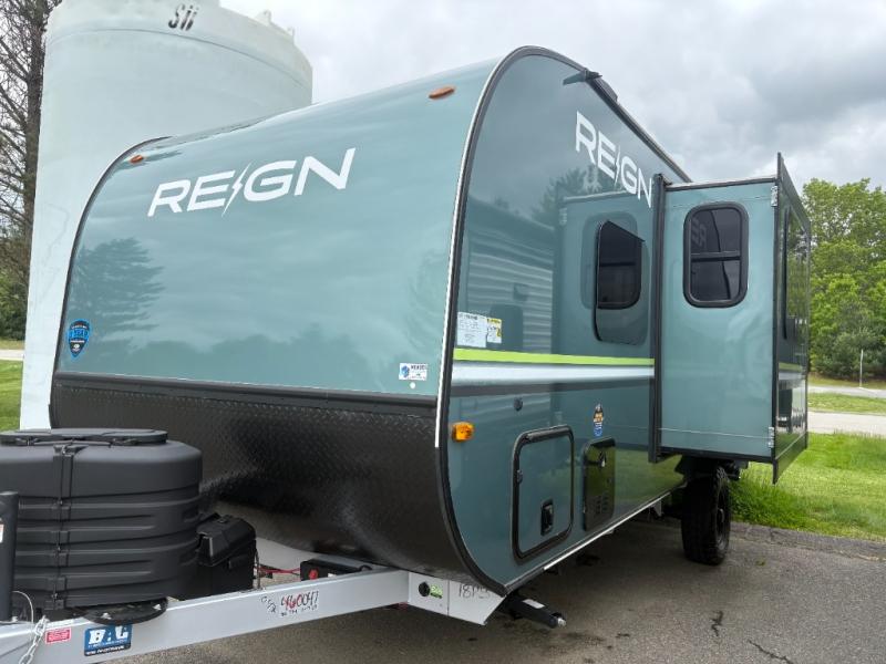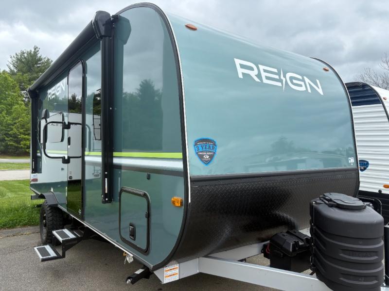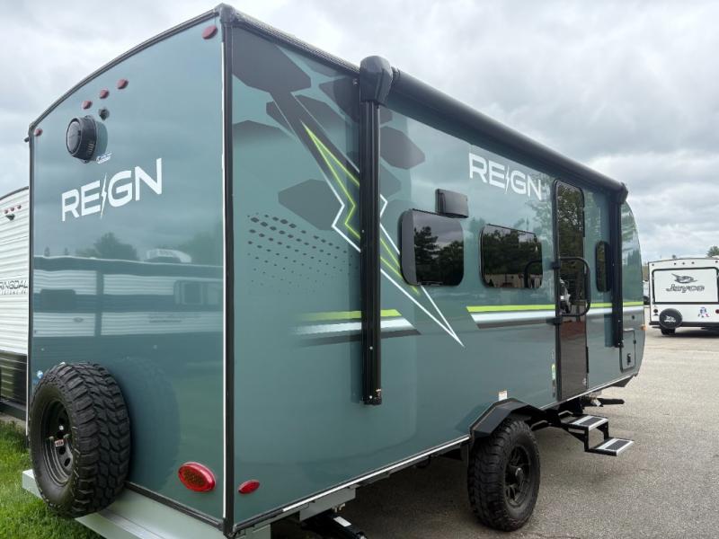 The Reign 18RB is a single-axle travel trailer that combines efficiency with thoughtful design. Featuring a versatile Murphy bed, a huge kitchen countertop, and cozy living space, this model is perfect for couples or small families who want comfort, style, and convenience in a lightweight package.