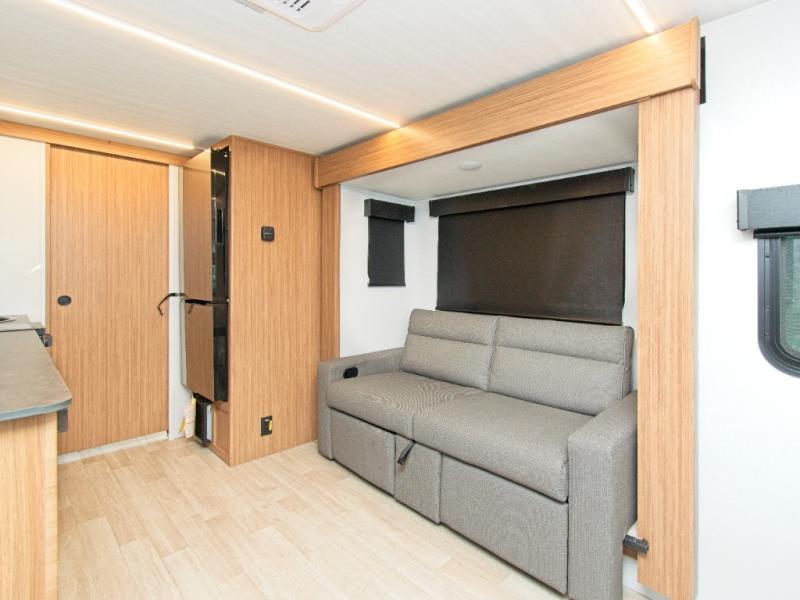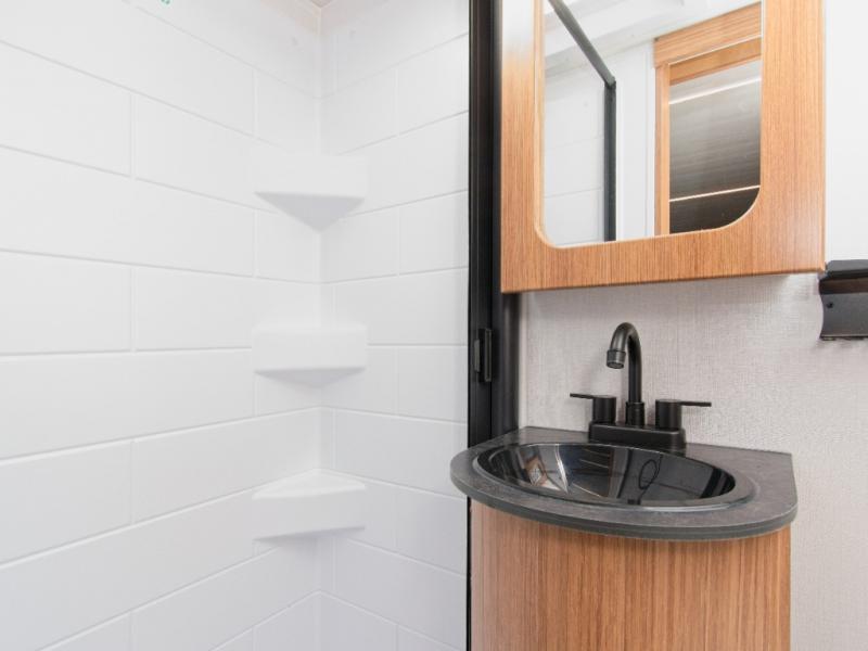 - Modern Kitchen: Solid surface countertops, stainless steel sink, and an 11 cu. ft. 12V refrigerator make meal prep a breeze.