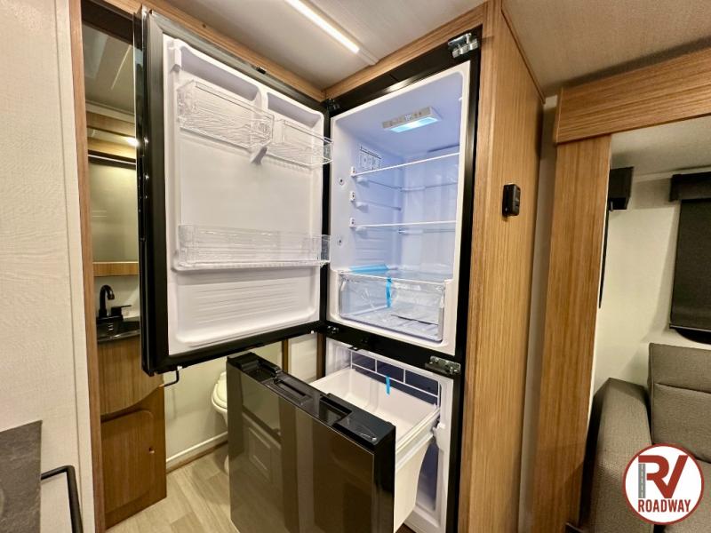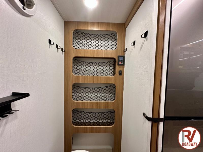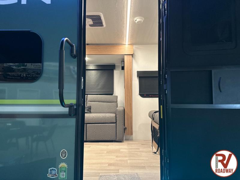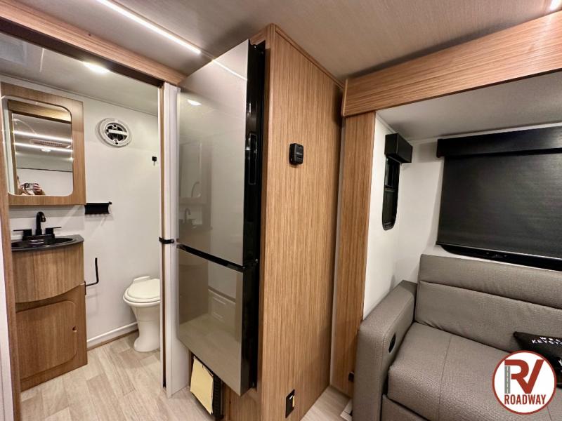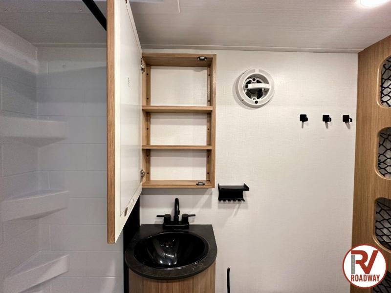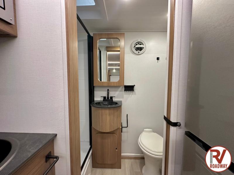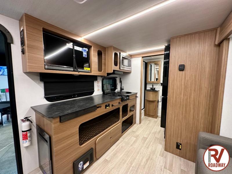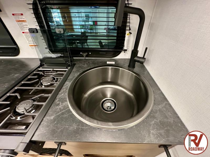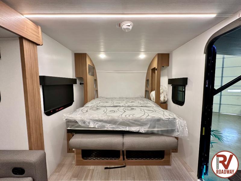 This single axle trailer is both cozy and versatile since there is a fold down sofa/Murphy bed up front! Now you can easily convert seating space into sleeping space, plus there are dual bedside closets to keep your things tidy. A two burner cooktop and air fryer/convection microwave will let you cook meals each day, and there is a huge countertop plus a flip-up extension for even more prep space. This unit also includes a theater dinette where you can relax each day, and the fireplace is sure to make your space feel like home!