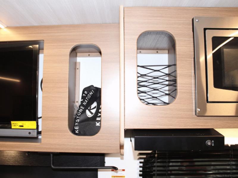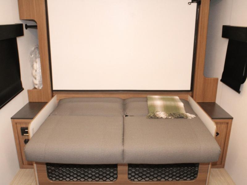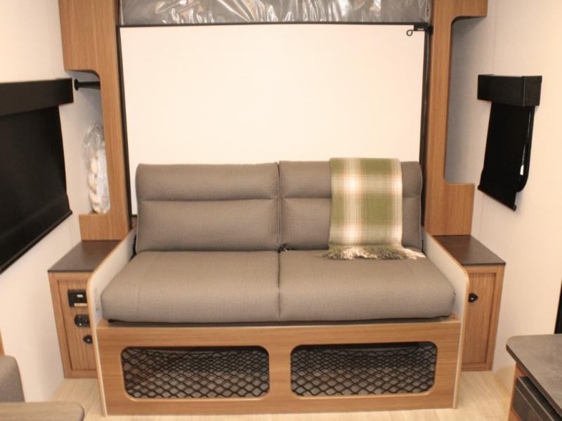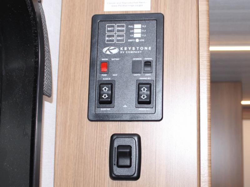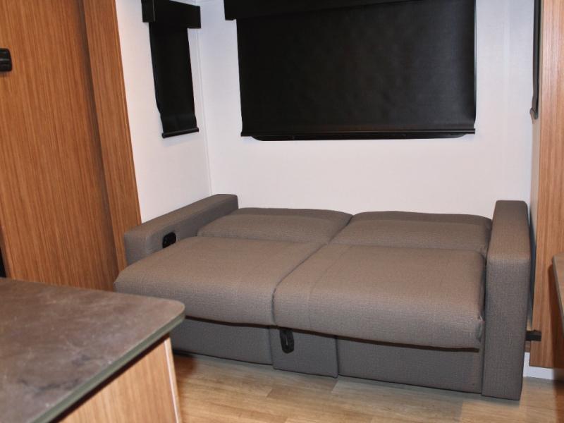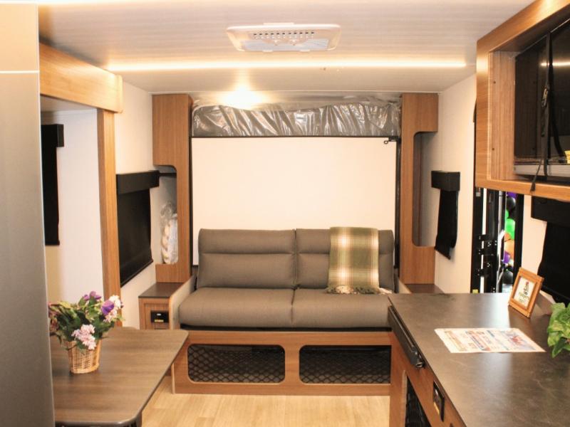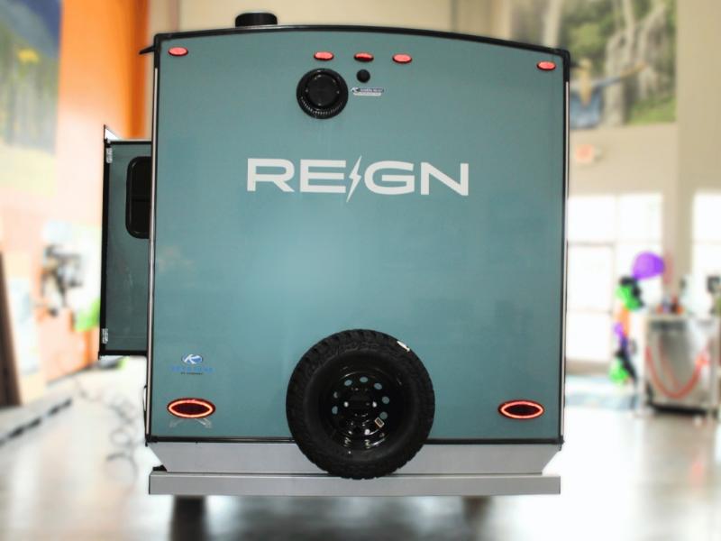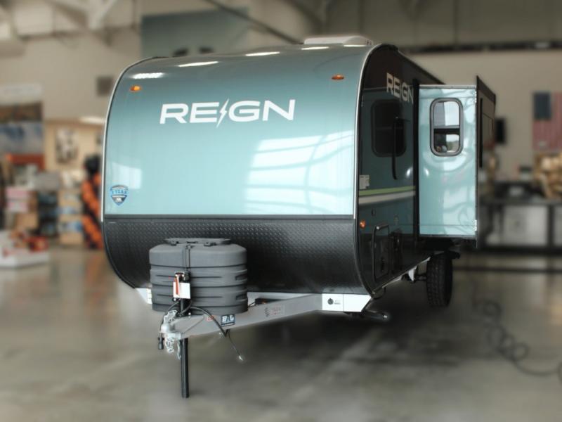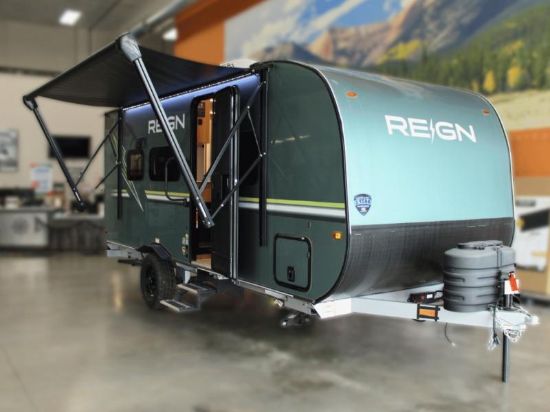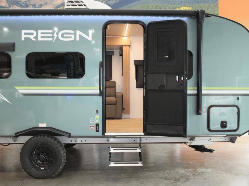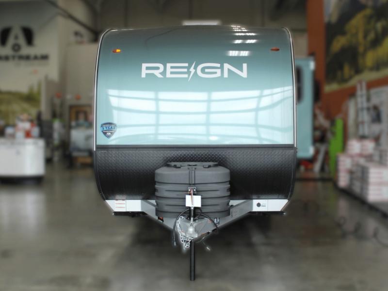 Inside, you’ll appreciate the ultra-bright LED light strip, solid surface kitchen countertops, and blackout night shades that help you control light and privacy effortlessly. Every detail of the Reign 18RB is crafted to elevate your camping experience with luxury and practicality.