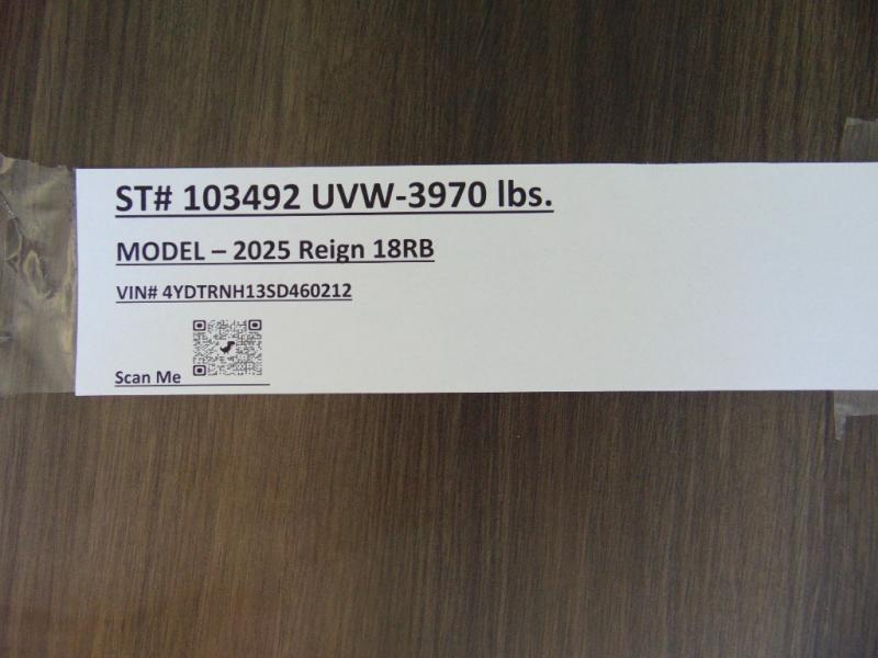 Experience the perfect blend of adventure, comfort, and style with the New 2025 Keystone RV Reign 18RB! Designed for the modern traveler, this compact travel trailer packs premium features into a lightweight, easy-to-tow design. Whether you’re exploring the mountains, camping by the beach, or hitting your favorite RV parks, the Keystone Reign 18RB ensures every journey is an unforgettable experience.