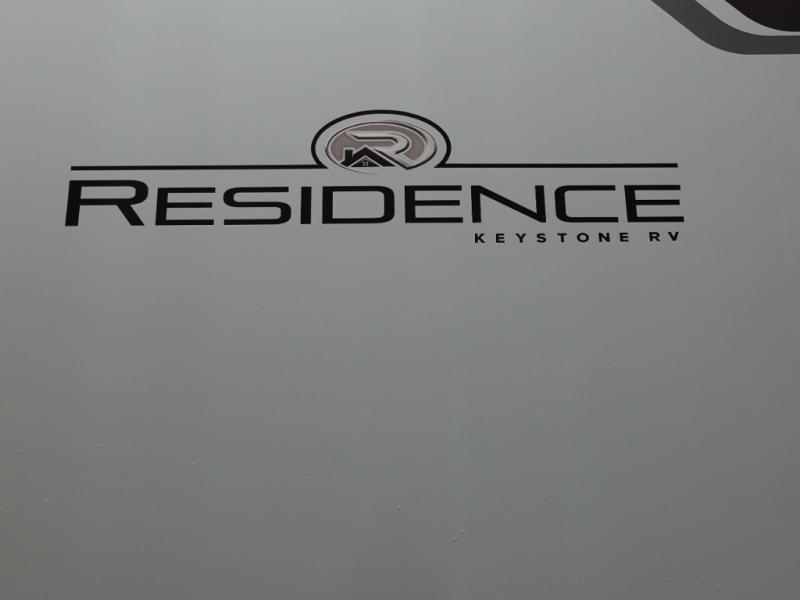 Each Residence destination trailer by Keystone offers sliding glass door providing easier access, more natural lighting, great views and fresh air when you want to leave the door open. The 8' interior height gives you taller ceilings with an open feel. Some other highlights include pre-drilled/screwed hardwood cabinet framing with easy-glide doors and waste basket storage, solid hardwood cabinetry, stainless steel undermount sink , in-floor heating ducts and Tru-fit slide construction. The heated and enclosed underbelly will allow you to take up residence all year long, and you'll also find a power awning with LED lights outside, as well as Dexter E-Z lube axles for smooth towing. Plus, if are looking for a smooth-sided laminated construction, you will love the laminated sidewalls!