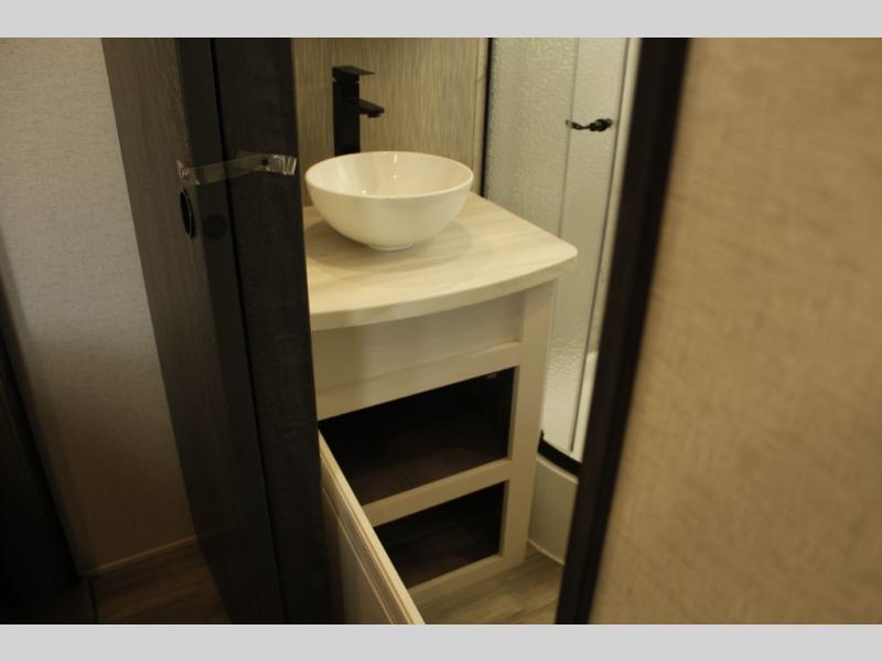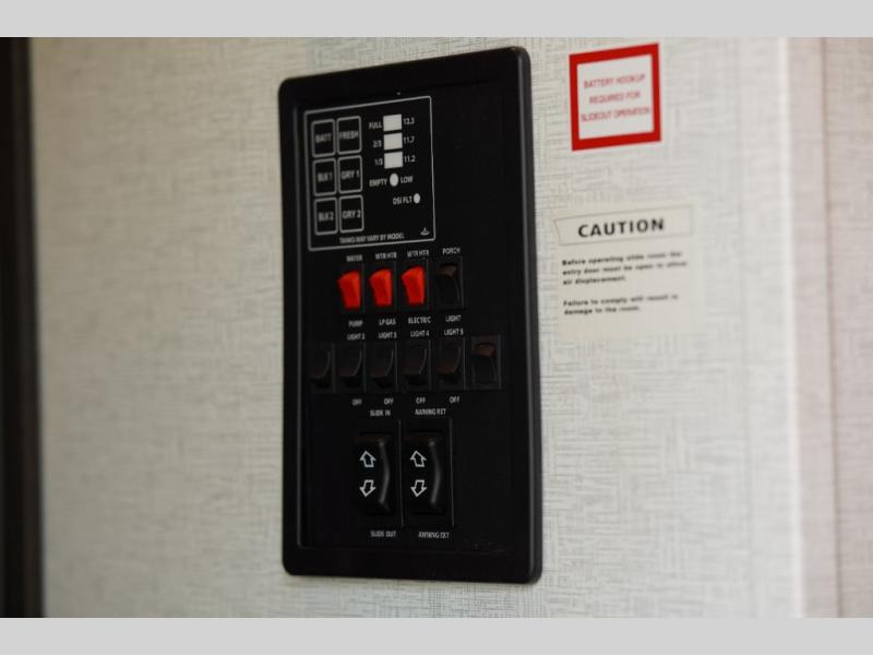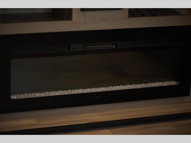 Escape your weekly schedule to enjoy the lake, hills and/or your ranch to your own trailer that brings you rest, peace and comfort! You can sleep like a king on the bedroom slide out, place your cellphone on the vanity with drawers, leave clean clothes in the wardrobe for each trip. The double entry bathroom allows you easy access from the bedroom and hallway, and the bedroom has the second entry/exit door allowing easy access outside anytime. You can relax on the front sofa sleeper and the theatre seats plus there is a free-standing dinette you might like to work from if needed. The cook will love all the counter space, the appliances including the refrigerator, and everyone will enjoy the 50" HDTV and fireplace.
