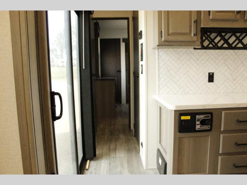 Each Residence destination trailer by Keystone offers full-height sliding patio doors providing easier access, more natural lighting, great views and fresh air when you want to leave the door open. The 8' interior height gives you taller ceilings with an open feel, and the central vacuum system allows you to clean up quickly and includes a 30' collapsible hose, a mesh storage bag and disposable vacuum bags. Some other highlights include pre-drilled/screwed hardwood cabinet framing with easy-glide doors and waste basket storage, solid hardwood cabinetry, a four-door refrigerator, in-floor heating ducts and Tru-fit slide construction. The heated and enclosed underbelly will allow you to take up residence all year long, and you'll also find a power awning with LED lights outside, as well as MorRyde steps and Dexter E-Z lube axles for smooth towing. You can even choose from aluminum or laminated sidewalls if you want a more conventional construction or a smooth-sided laminated construction!