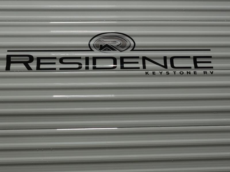 Each Residence destination trailer by Keystone offers sliding glass door providing easier access, more natural lighting, great views and fresh air when you want to leave the door open. The 8' interior height gives you taller ceilings with an open feel. Some other highlights include pre-drilled/screwed hardwood cabinet framing with easy-glide doors and waste basket storage, solid hardwood cabinetry, stainless steel undermount sink , in-floor heating ducts and Tru-fit slide construction. The heated and enclosed underbelly will allow you to take up residence all year long, and you'll also find a power awning with LED lights outside, as well as Dexter E-Z lube axles for smooth towing. Plus, if are looking for a smooth-sided laminated construction, you will love the laminated sidewalls!