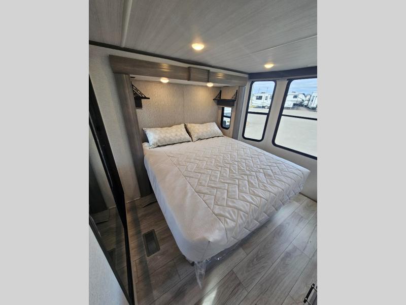 The Keystone Retreat destination trailer is a luxurious retreat in and of itself! You won't need to plan an extensive road trip because the Retreat gives you everything you need in one location. The spacious interiors include residential appliances and plenty of storage spaces for personal belongings, camp gear, food, and more! Whether you choose a Retreat with laminated or aluminum sidewalls, you're sure to enjoy extended stays to the fullest!