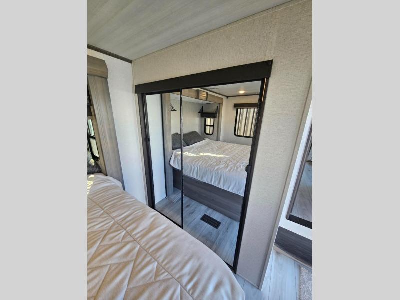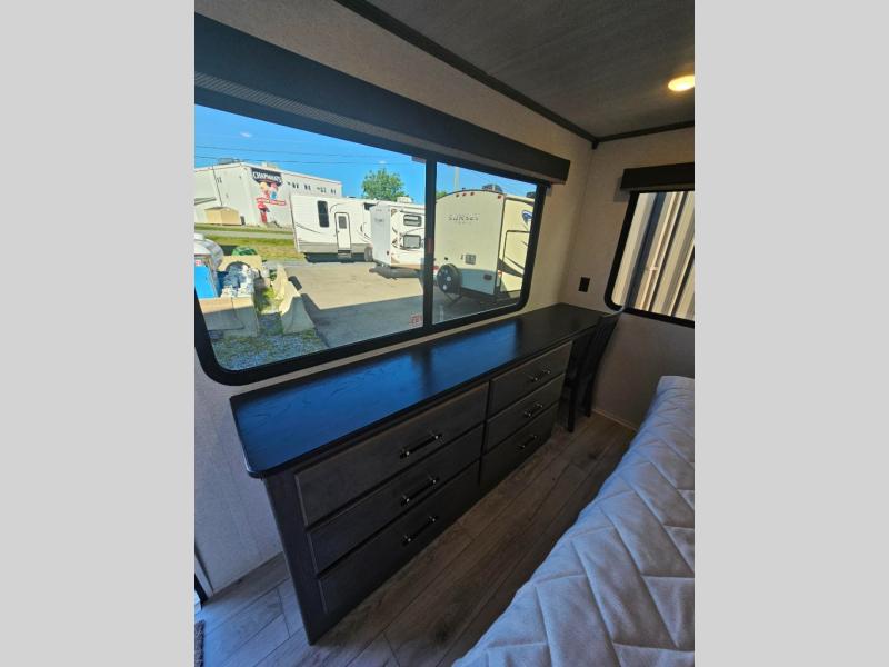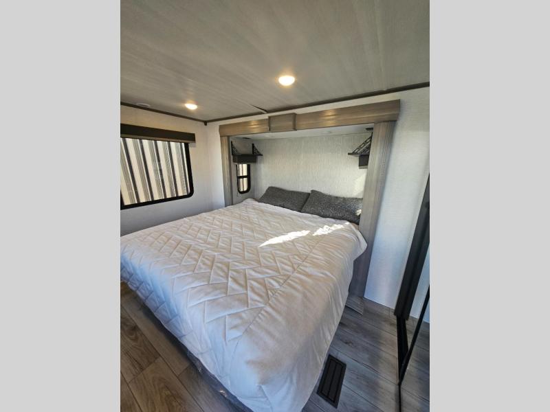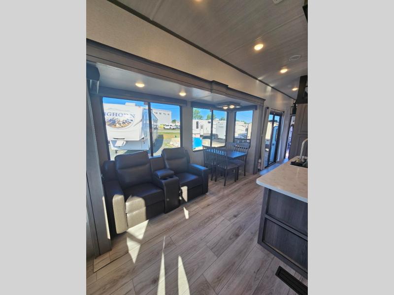 The Keystone Retreat destination trailer is a luxurious retreat in and of itself! You won't need to plan an extensive road trip because the Retreat gives you everything you need in one location. The spacious interiors include residential appliances and plenty of storage spaces for personal belongings, camp gear, food, and more! Whether you choose a Retreat with laminated or aluminum sidewalls, you're sure to enjoy extended stays to the fullest!