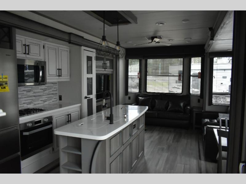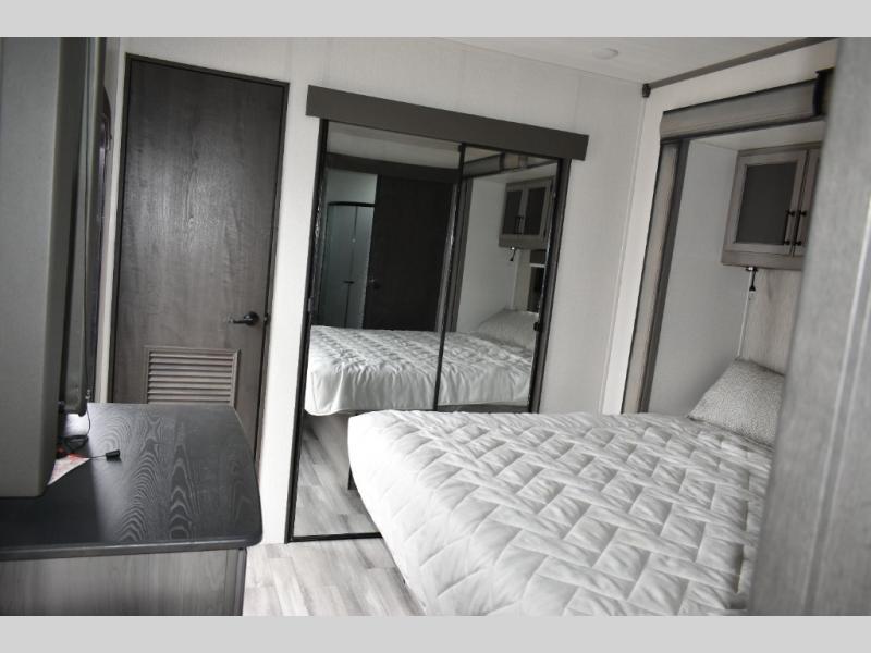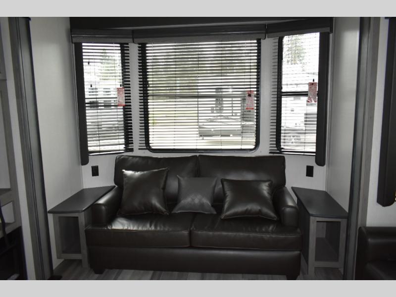The Keystone Retreat destination trailer is a luxurious retreat in and of itself! You won't need to plan an extensive road trip because the Retreat gives you everything you need in one location. The spacious interiors include residential appliances and plenty of storage spaces for personal belongings, camp gear, food, and more! Whether you choose a Retreat with laminated or aluminum sidewalls, you're sure to enjoy extended stays to the fullest!