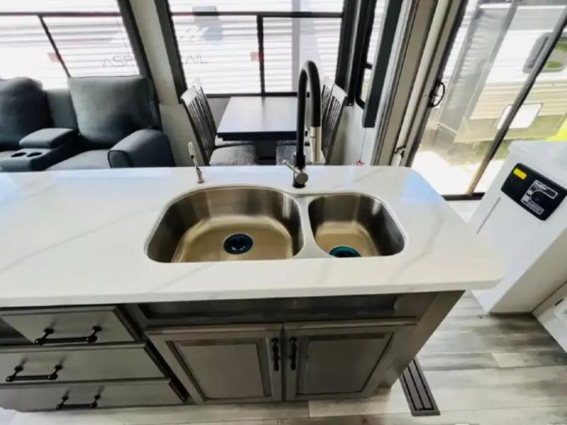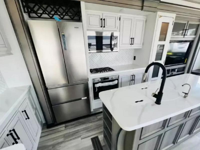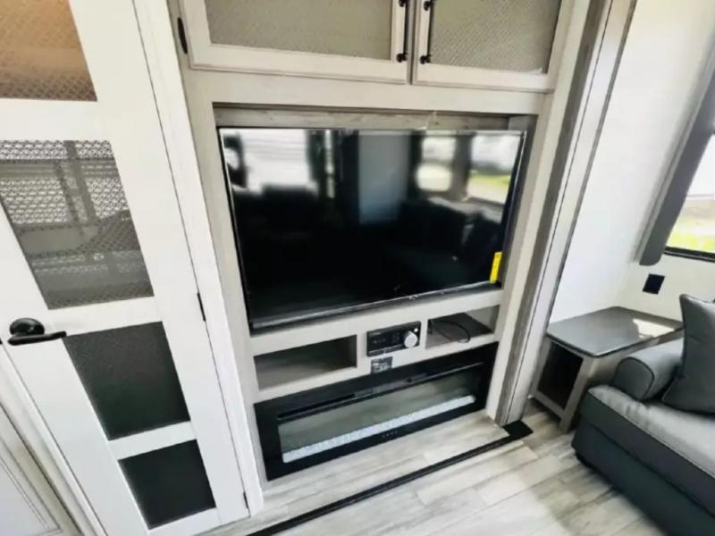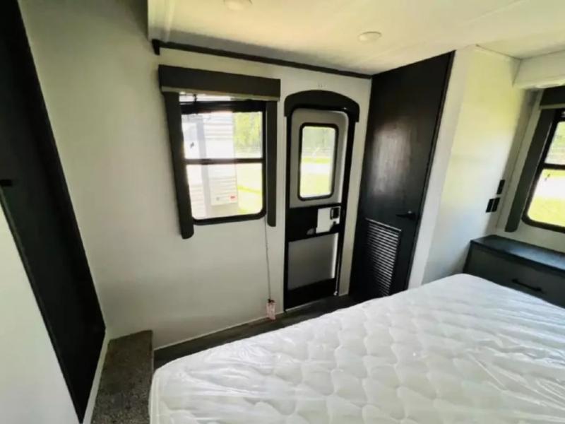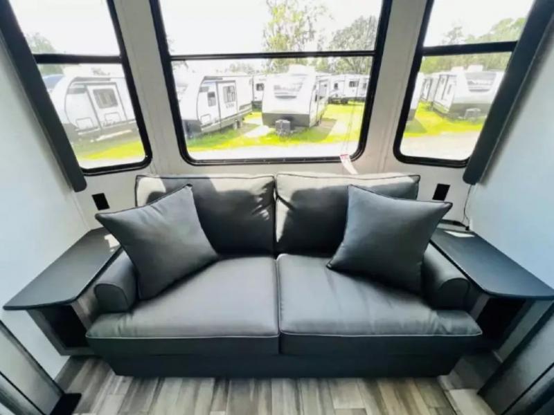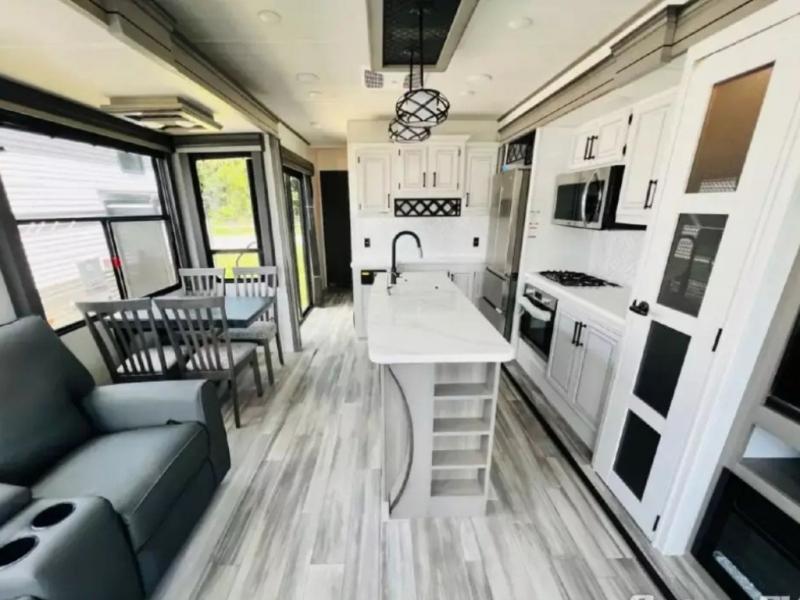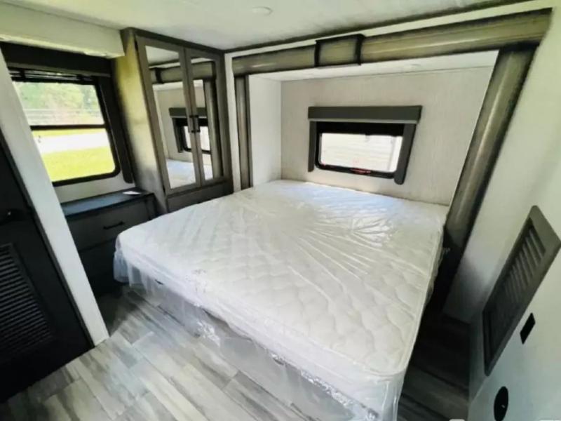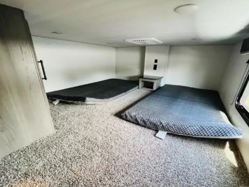 This Retreat destination trailer by Keystone RV brings you the feel of home all while you enjoy your camping experience. Your kids will love the loft and a place to call their own. There are two bunk mats and a place for a TV to be hooked up. Enjoy the private bedroom fit for a king with its king-size bed or relax with the family on the theatre seating in front of the HDTV.