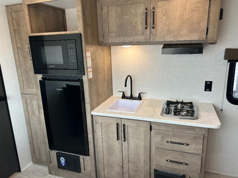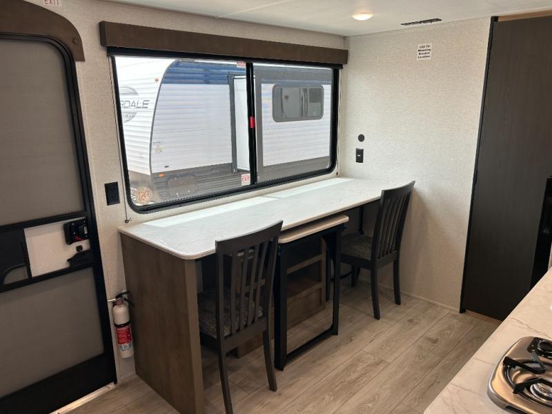 With any Springdale Classic Mini travel trailer by Keystone, you will enjoy lightweight towing thanks to their single-axle! You'll find the XL entry assist handle will make entering and exiting your unit easier than ever, and the power awning will provide protection from the sun as you relax in your camp chairs outside. Each model includes blackout night shades, solid wood cabinet doors and drawers, a shower skylight for more standing room, plus many more interior comforts. There is also a 5,000 BTU sidewall A/C and 20K BTU furnace to keep you comfortable, plus a Girard tankless water heater for endless hot showers!