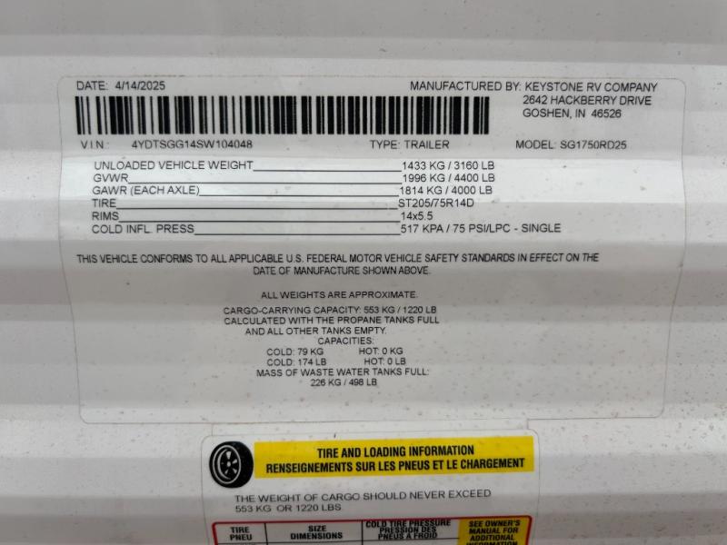 New 2025 Keystone RV Springdale 1750RD Travel Trailer