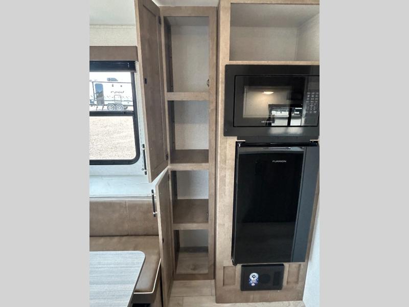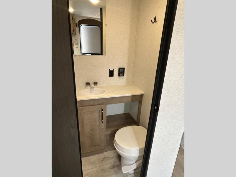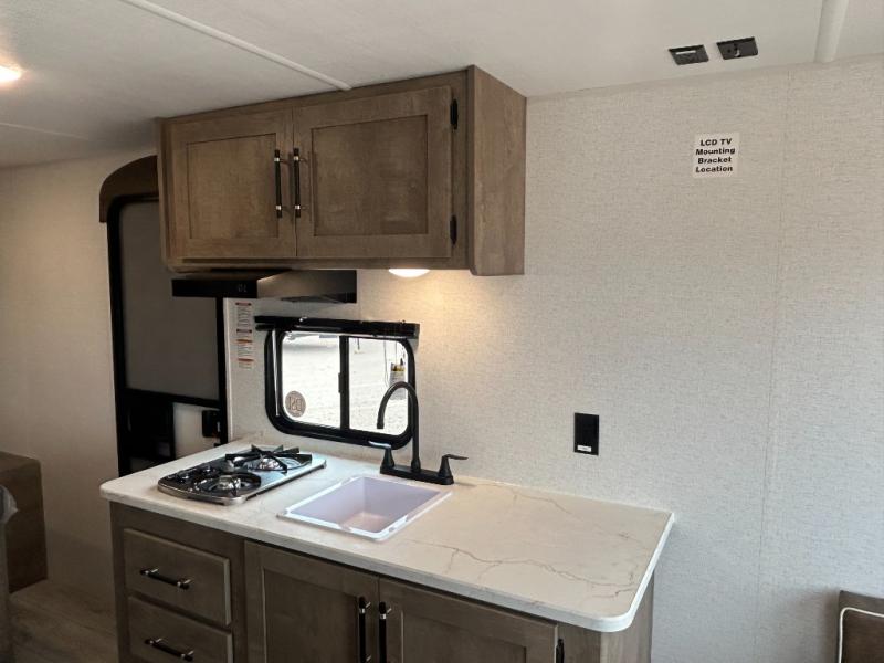 With any Springdale Classic Mini travel trailer by Keystone, you will enjoy lightweight towing thanks to their single-axle! You'll find the XL entry assist handle will make entering and exiting your unit easier than ever, and the power awning will provide protection from the sun as you relax in your camp chairs outside. Each model includes blackout night shades, solid wood cabinet doors and drawers, a shower skylight for more standing room, plus many more interior comforts. There is also a 5,000 BTU sidewall A/C and 20K BTU furnace to keep you comfortable, plus a Girard tankless water heater for endless hot showers!