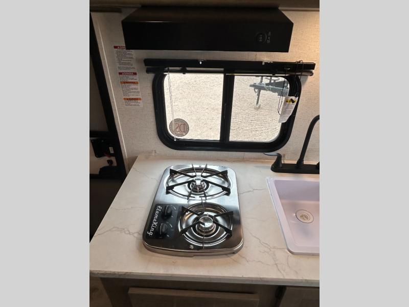You will find lots of storage inside and outside this trailer allowing you to bring along everything you need for a great camping trip! Along the exterior there is a pass-thru compartment for your outdoor gear and a 10' power awning giving you a covered outdoor living area to enjoy. The cook will have a two burner gas range to make meals, and everyone can dine around the U-shaped dinette. There is a full bathroom to get cleaned up in before bedtime, and a queen bed to fall asleep quickly so you can have fun again tomorrow.