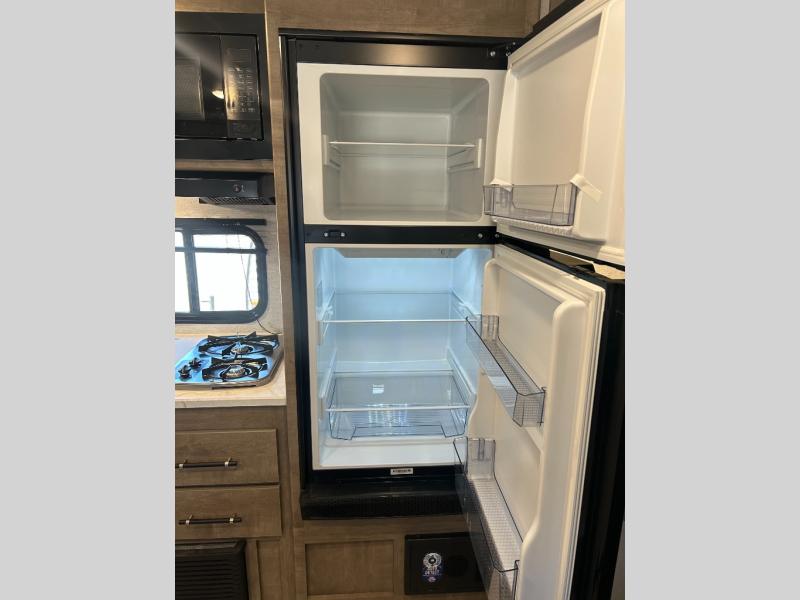 With any Springdale Classic Mini travel trailer by Keystone, you will enjoy lightweight towing thanks to their single-axle! You'll find the XL entry assist handle will make entering and exiting your unit easier than ever, and the power awning will provide protection from the sun as you relax in your camp chairs outside. Each model includes blackout night shades, solid wood cabinet doors and drawers, a shower skylight for more standing room, plus many more interior comforts. There is also a 5,000 BTU sidewall A/C and 20K BTU furnace to keep you comfortable, plus a Girard tankless water heater for endless hot showers!