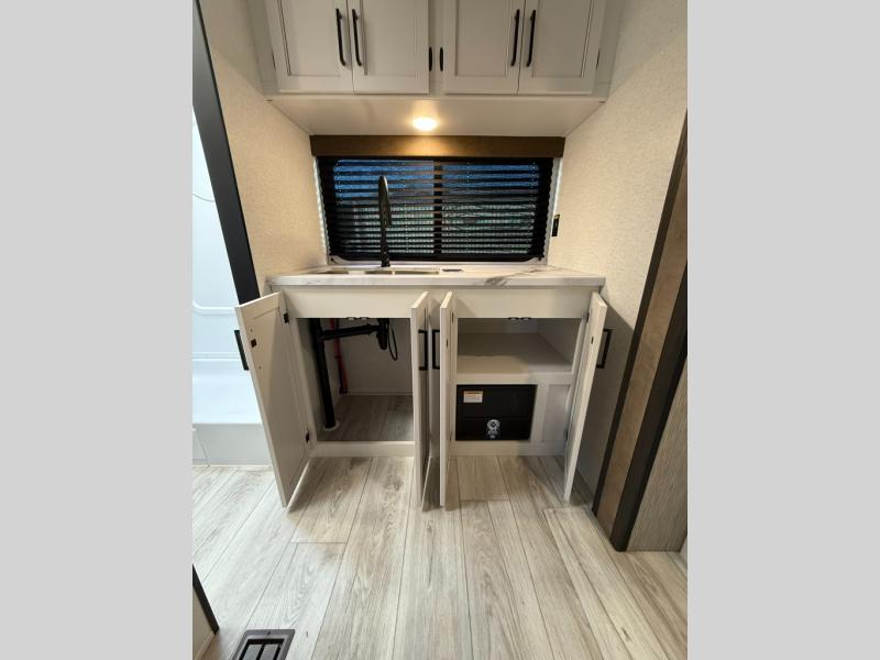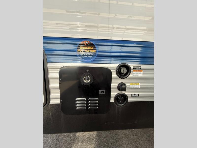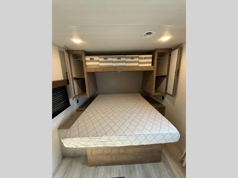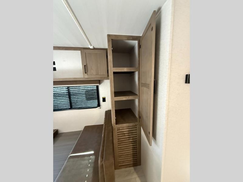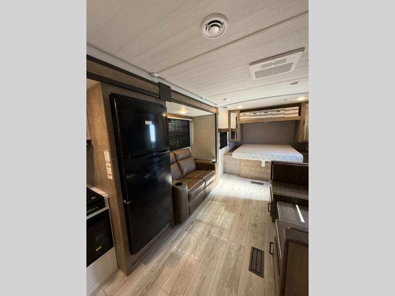 Measuring 26 feet 2 inches in length and 11 feet 1 inch in height, this model offers a queen bed and a booth dinette, comfortably sleeping up to four occupants! Come see it at 250 Longwood Drive, Richmond Hill, GA or call us at 912-756-6606