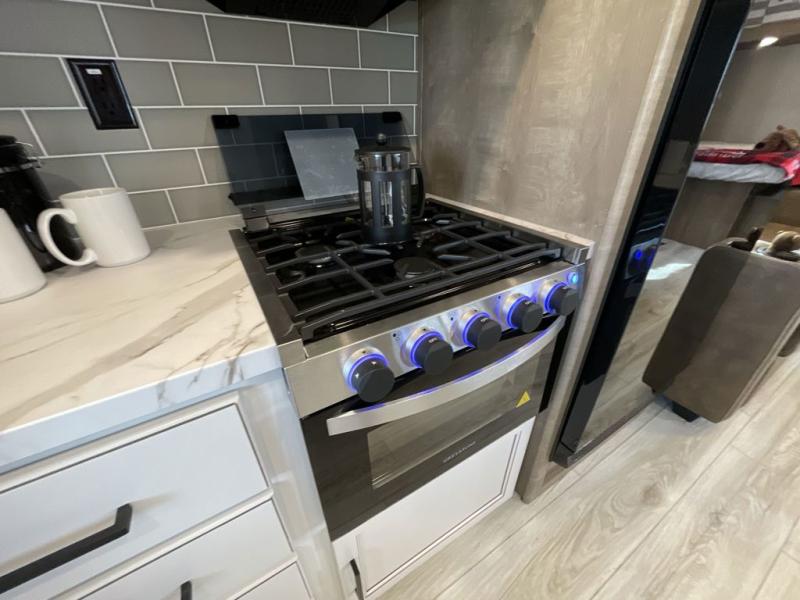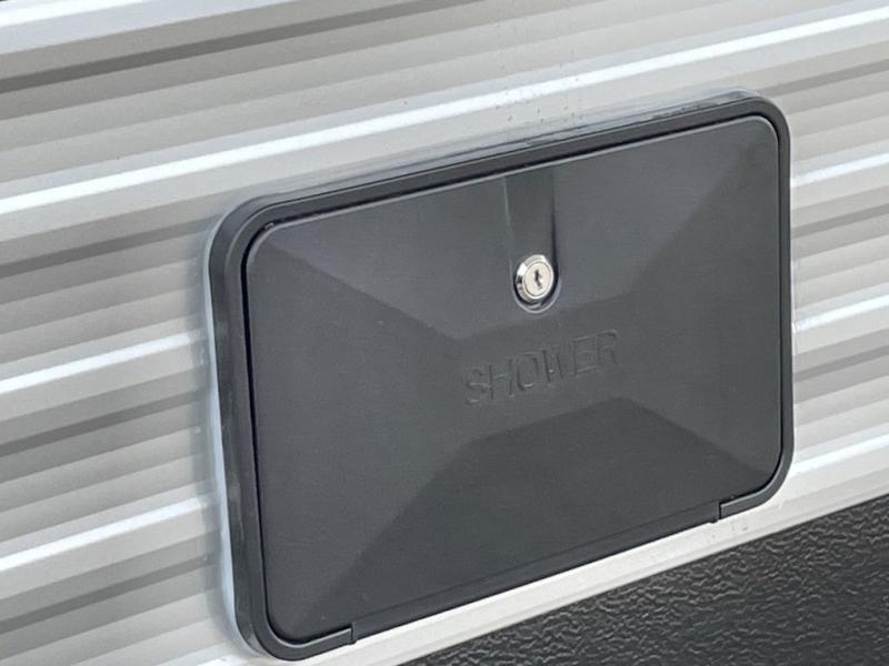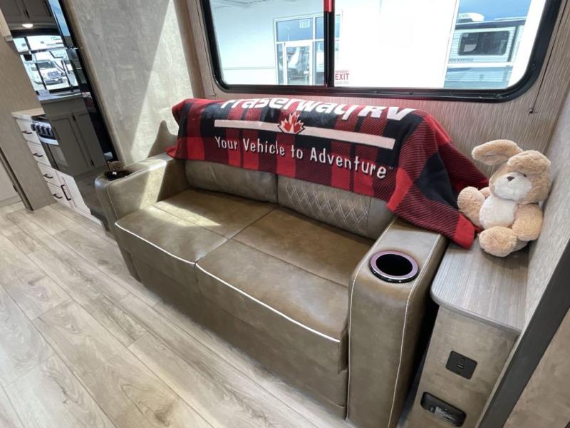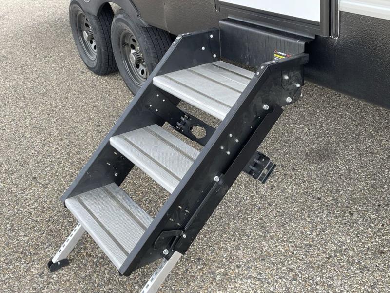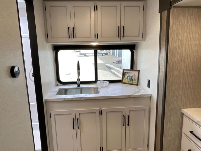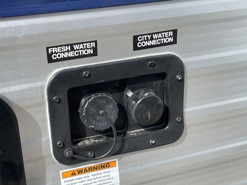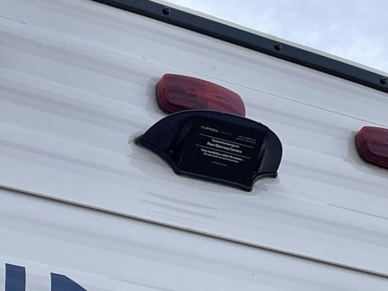 Trips to your favorite camping spot just got better in this open concept travel trailer. The large slide out houses the tri-fold sofa with an end table, three burner cooktop, refrigerator, and overhead cabinet for storage. You can clean up each day in the rear corner full bath with a shower skylight and a sliding door to save on space, and the other rear corner includes the spacious sink and counter space to prep meals. A booth dinette provides a place to dine, play games, and even let a guest sleep over. When you're ready to sleep, the queen bed up front is sure to bring a great night's rest, and there is a privacy curtain here for added convenience. You are sure to appreciate the laundry chute that allows you to throw clothes directly into the pass-through storage!