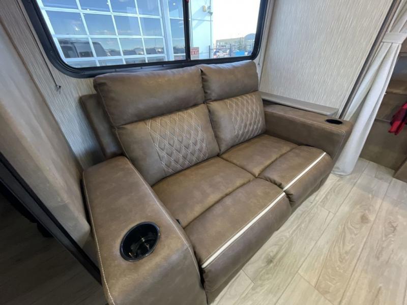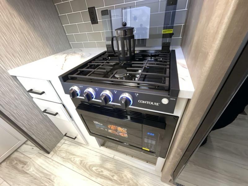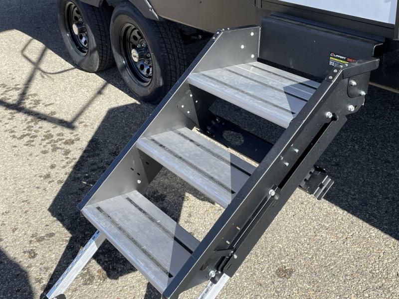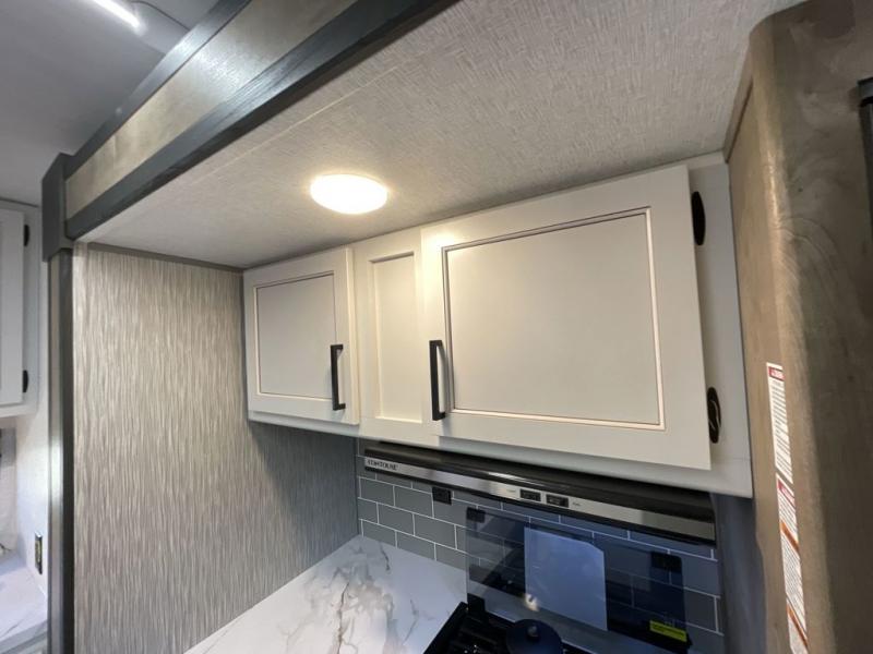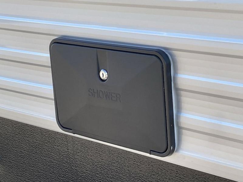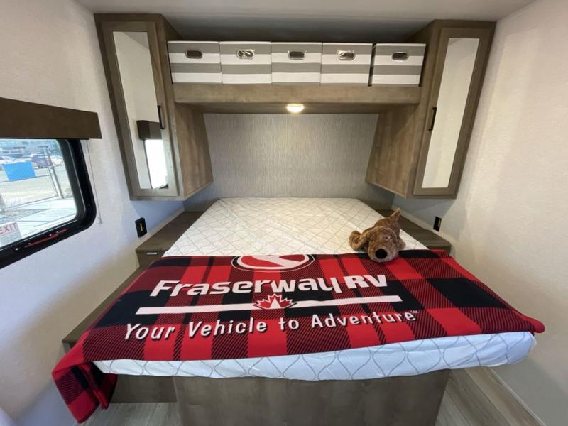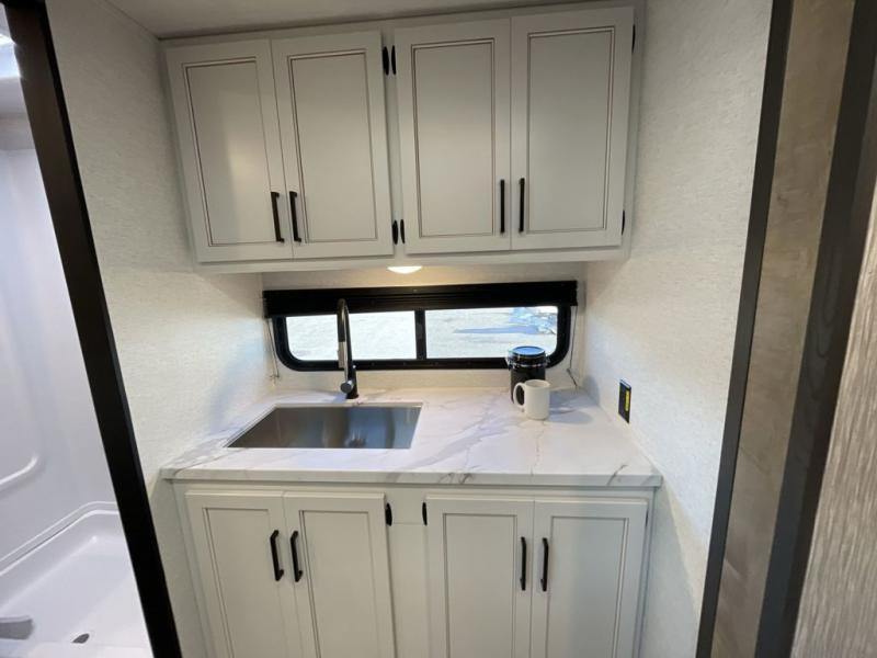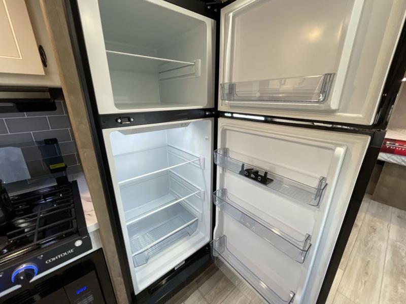 Trips to your favorite camping spot just got better in this open concept travel trailer. The large slide out houses the tri-fold sofa with an end table, three burner cooktop, refrigerator, and overhead cabinet for storage. You can clean up each day in the rear corner full bath with a shower skylight and a sliding door to save on space, and the other rear corner includes the spacious sink and counter space to prep meals. A booth dinette provides a place to dine, play games, and even let a guest sleep over. When you're ready to sleep, the queen bed up front is sure to bring a great night's rest, and there is a privacy curtain here for added convenience. You are sure to appreciate the laundry chute that allows you to throw clothes directly into the pass-through storage!