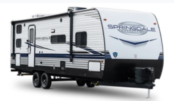 With any Springdale travel trailer by Keystone you will enjoy convenient amenities and comfortable camping features at every turn. The aluminum exterior will be easy to clean, and the power awning provides protection against the hot summer sun. There is also an exterior shower, a walkable roof, and an XL entry assist handle to safely enter and exit the unit. You will find many comforts inside, including a stainless steel sink, ample storage space for your belongings, and cozy sleeping spaces. Start a new adventure today in a Springdale travel trailer!