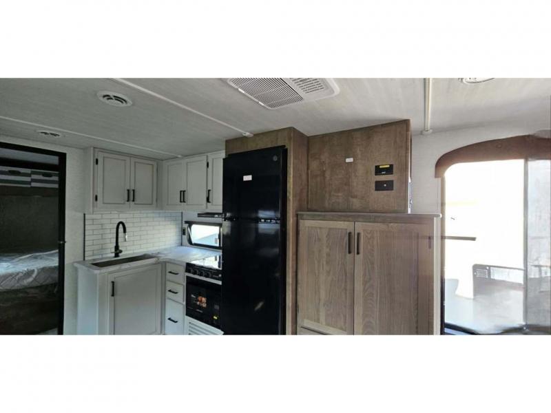 With any Springdale travel trailer by Keystone you will enjoy convenient amenities and comfortable camping features at every turn. The aluminum exterior will be easy to clean, and the power awning provides protection against the hot summer sun. There is also an exterior shower, a walkable roof, and an XL entry assist handle to safely enter and exit the unit. You will find many comforts inside, including a stainless steel sink, ample storage space for your belongings, and cozy sleeping spaces. Start a new adventure today in a Springdale travel trailer!