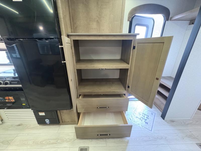 With any Springdale travel trailer by Keystone you will enjoy convenient amenities and comfortable camping features at every turn. The aluminum exterior will be easy to clean, and the power awning provides protection against the hot summer sun. There is also an exterior shower, a walkable roof, and an XL entry assist handle to safely enter and exit the unit. You will find many comforts inside, including a stainless steel sink, ample storage space for your belongings, and cozy sleeping spaces. Start a new adventure today in a Springdale travel trailer!