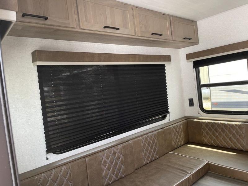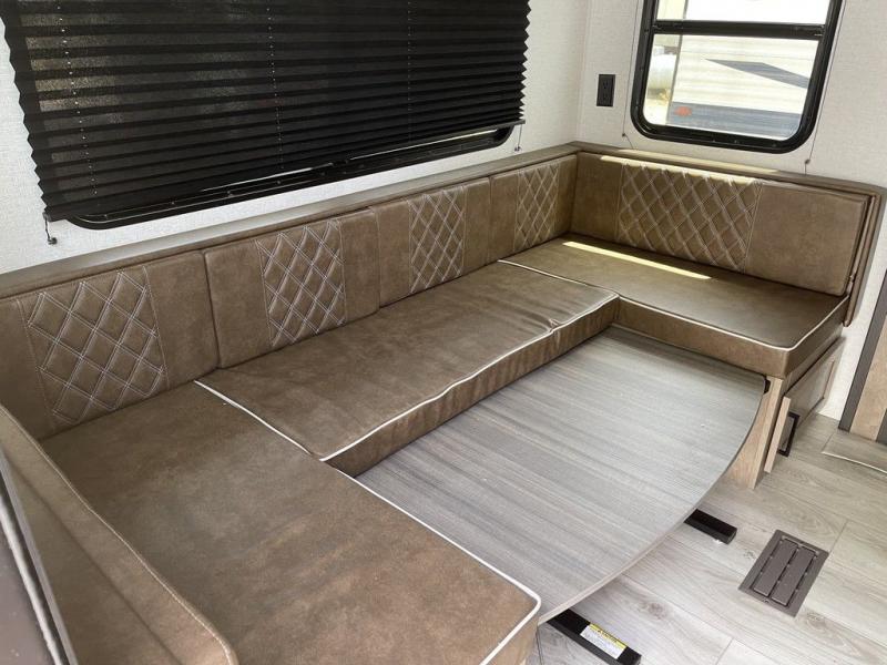 Private master with walk around queen. Slideout with theater seating, refrigerator and pantry. Rear U-shaped dinette with lot's of windows for that perfect view and open feeling. Walk through bath with step in shower and linen closet.