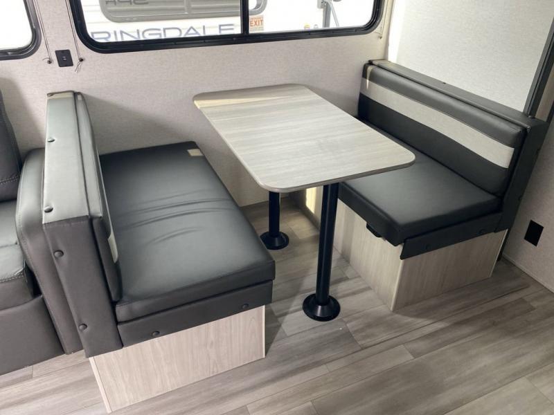 The Springdale Classic travel trailers by Keystone will provide you and your family many great outdoor experiences and it will also be kind to your pocketbook. Each one is constructed with an aluminum exterior, a walkable roof, and an I-beam frame with stamped steel cross-members and outriggers for added strength. There are also heavy duty stabilizer jacks and power tongue jacks outside, along with an XL entry assist handle for added convenience. Each travel trailer includes LED lighting, bedside outlets, and blackout night shades inside that will provide you with more privacy at night.