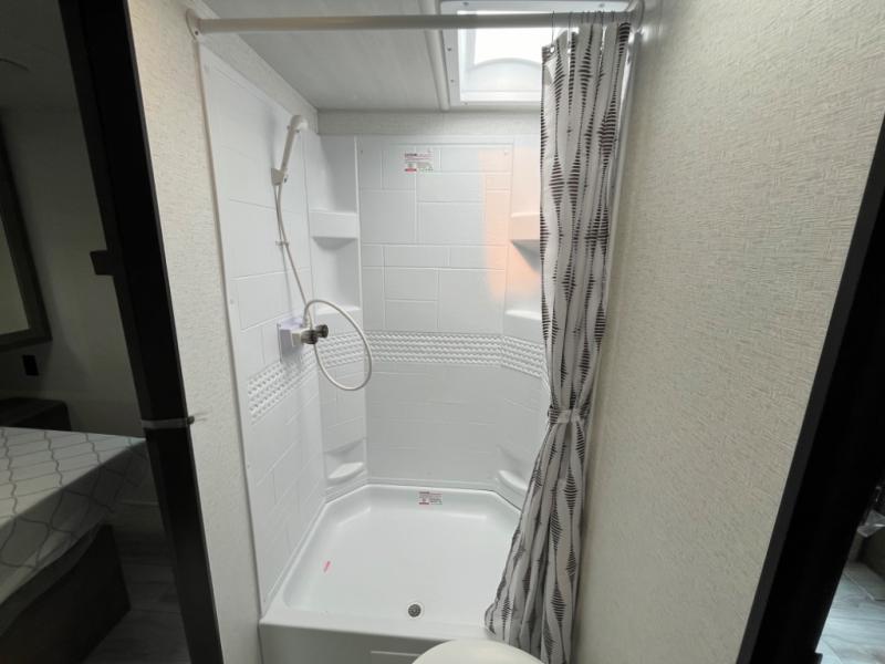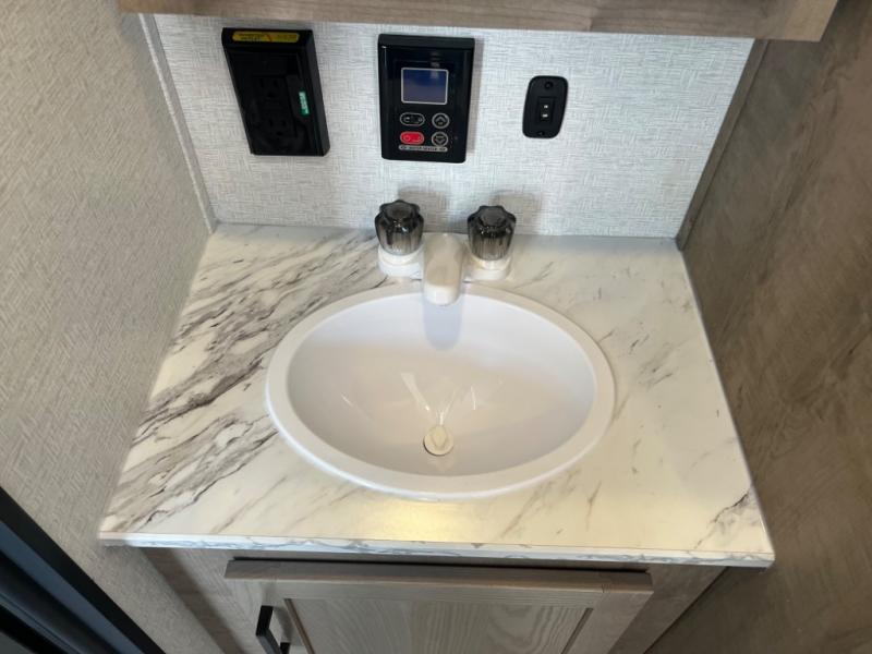 With any Springdale travel trailer by Keystone you will enjoy convenient amenities and comfortable camping features at every turn. The aluminum exterior will be easy to clean, and the power awning provides protection against the hot summer sun. There is also an exterior shower, a friction hinge entry door, and an XL entry assist handle to safely enter and exit the unit. You will find many comforts inside, including a stainless steel sink, ample storage space for your belongings, and cozy sleeping spaces. Start a new adventure today in a Springdale travel trailer!