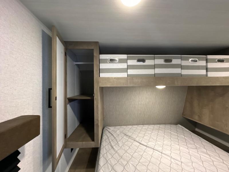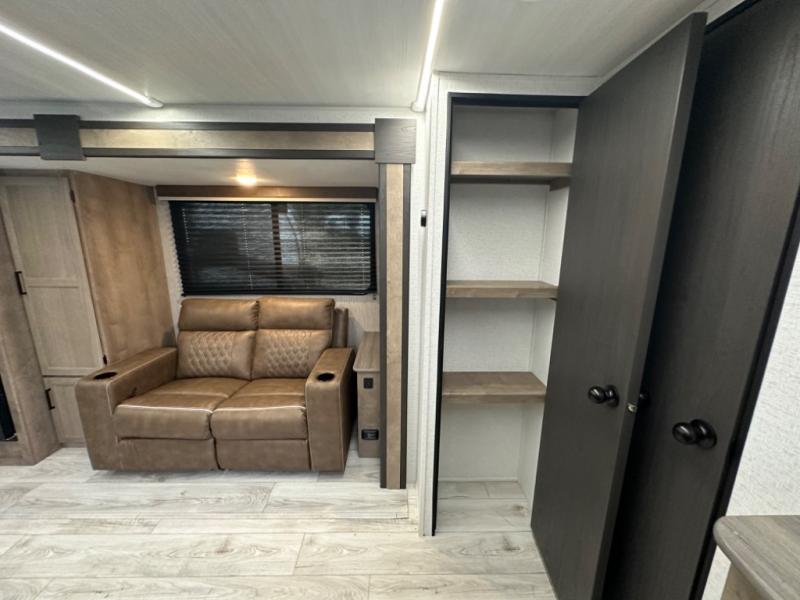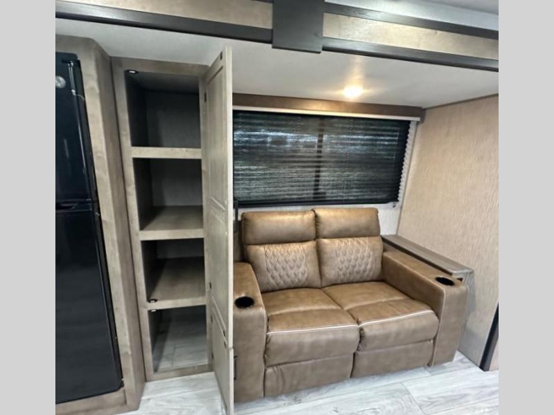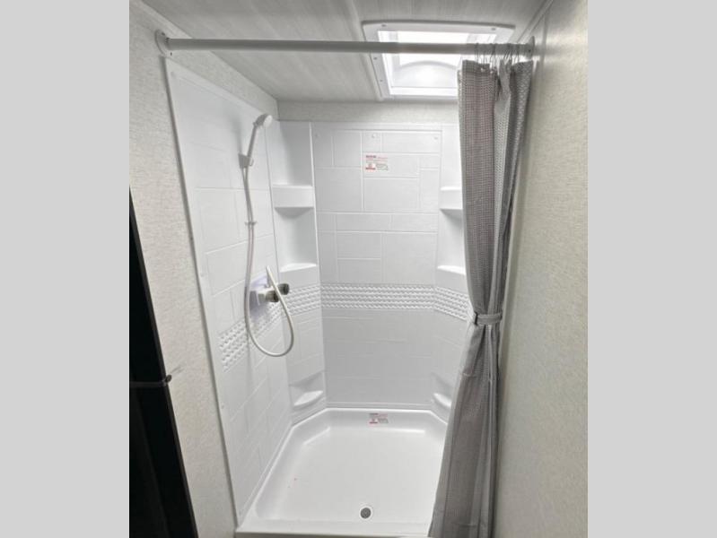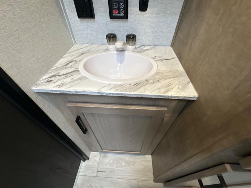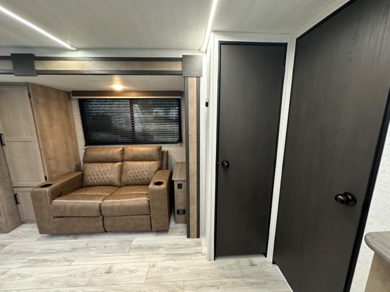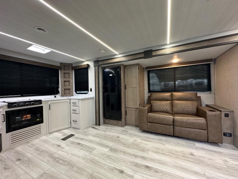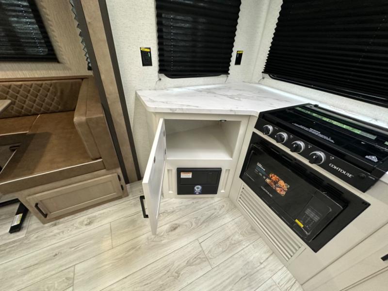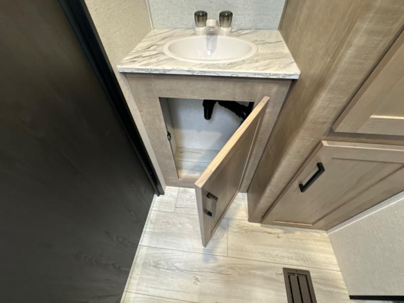 Rear Kitchen Design: The 281RK boasts a rear kitchen layout that offers plenty of counter space and all the appliances you need to cook up delicious meals wherever you go. Whether you're grilling outside or preparing a home-cooked meal inside, the kitchen is spacious and well-equipped to meet all your culinary needs.