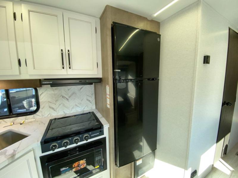 With any Springdale travel trailer by Keystone you will enjoy convenient amenities and comfortable camping features at every turn. The aluminum exterior will be easy to clean, and the power awning provides protection against the hot summer sun. There is also an exterior shower, a walkable roof, and an XL entry assist handle to safely enter and exit the unit. You will find many comforts inside, including a stainless steel sink, ample storage space for your belongings, and cozy sleeping spaces. Start a new adventure today in a Springdale travel trailer!