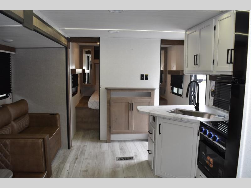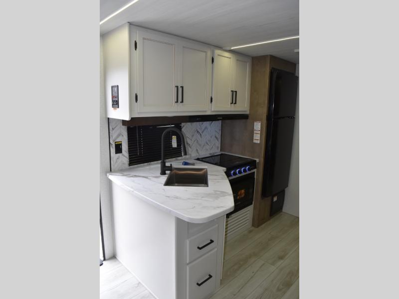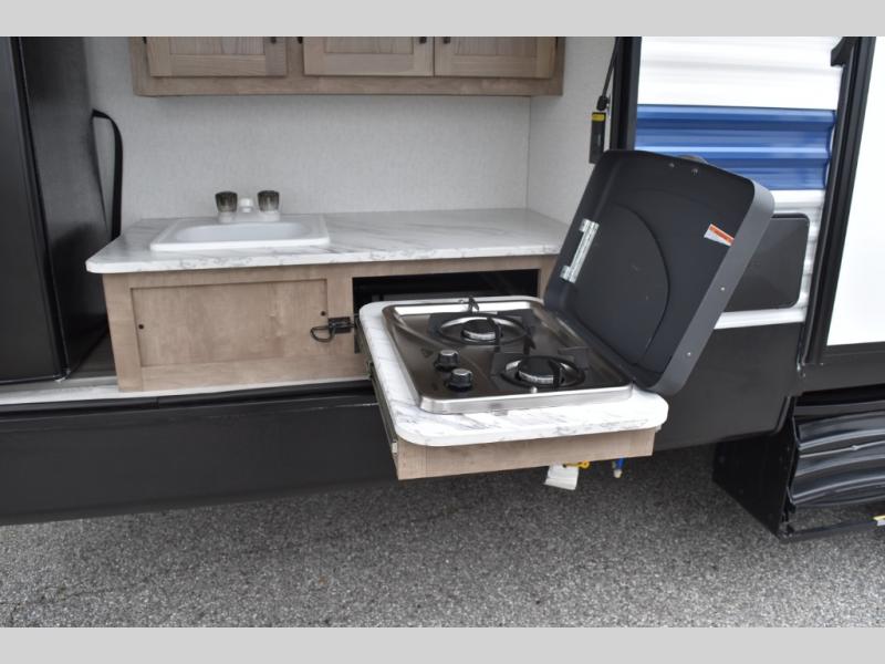 With any Springdale travel trailer by Keystone you will enjoy convenient amenities and comfortable camping features at every turn. The aluminum exterior will be easy to clean, and the power awning provides protection against the hot summer sun. There is also an exterior shower, a walkable roof, and an XL entry assist handle to safely enter and exit the unit. You will find many comforts inside, including a stainless steel sink, ample storage space for your belongings, and cozy sleeping spaces. Start a new adventure today in a Springdale travel trailer!