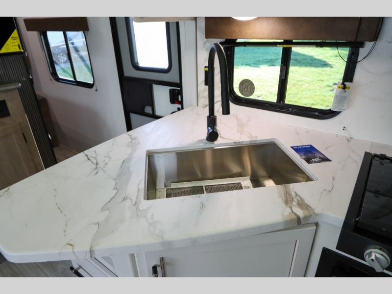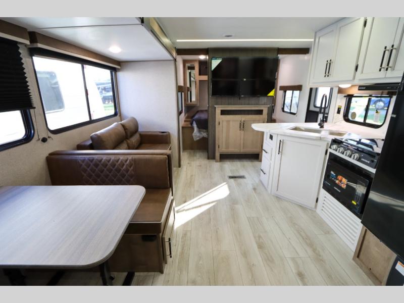 With any Springdale travel trailer by Keystone you will enjoy convenient amenities and comfortable camping features at every turn. The aluminum exterior will be easy to clean, and the power awning provides protection against the hot summer sun. There is also an exterior shower, a walkable roof, and an XL entry assist handle to safely enter and exit the unit. You will find many comforts inside, including a stainless steel sink, ample storage space for your belongings, and cozy sleeping spaces. Start a new adventure today in a Springdale travel trailer!