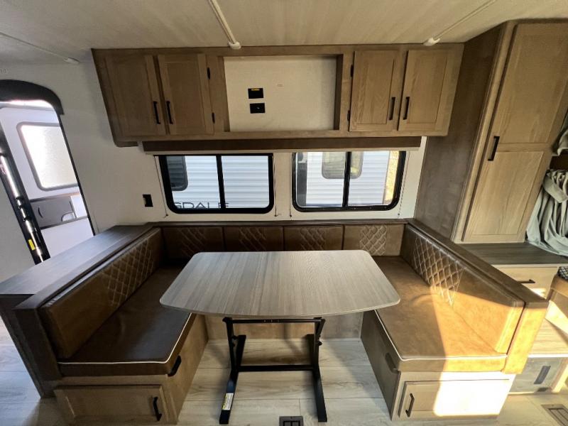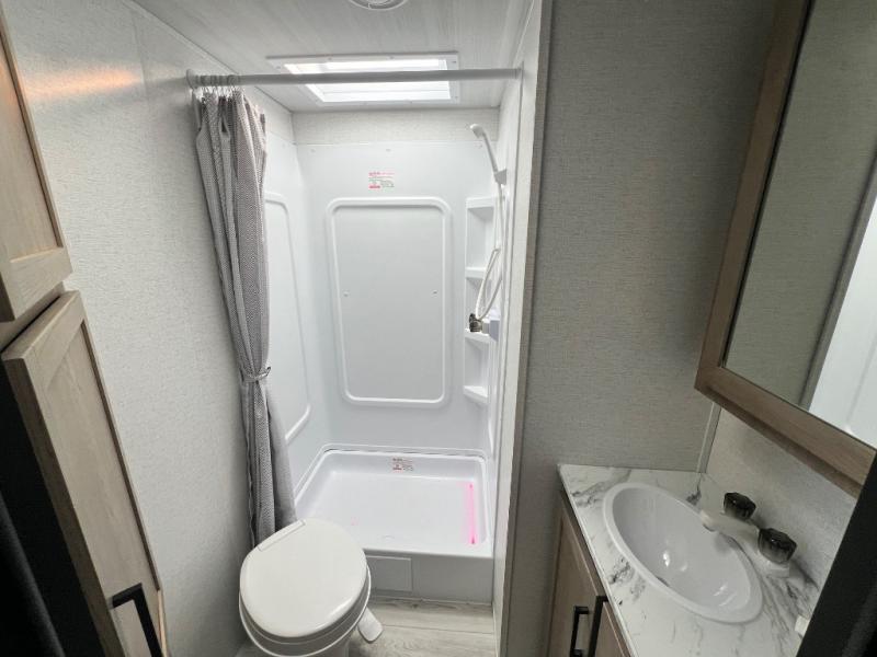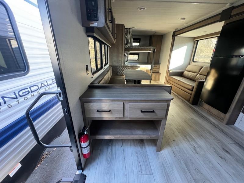 With any Springdale travel trailer by Keystone you will enjoy convenient amenities and comfortable camping features at every turn. The aluminum exterior will be easy to clean, and the power awning provides protection against the hot summer sun. There is also an exterior shower, a walkable roof, and an XL entry assist handle to safely enter and exit the unit. You will find many comforts inside, including a stainless steel sink, ample storage space for your belongings, and cozy sleeping spaces. Start a new adventure today in a Springdale travel trailer!